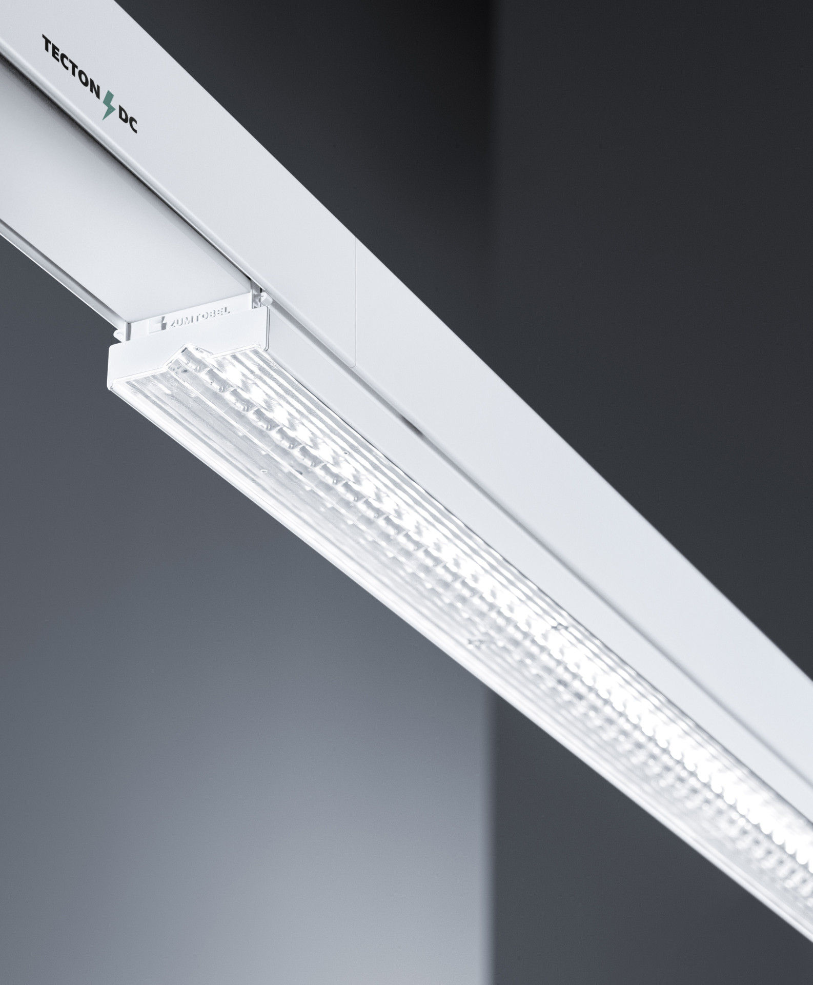 Zumtobel prezentuje pod označením TECTON DC jeden z prvních lištových systémů se stejnosměrným napájením. Společnosti v energeticky intenzivních odvětvích mohou díky snadné integraci systémů napájených stejnosměrným napětím beze ztrát využívat pro osvětlení energie z udržitelných zdrojů, které jsou připojeny do jejich lokální stejnosměrné sítě. Toto řešení podporuje nejen dosažení podnikových cílů v oblasti ochrany klimatu, ale také přispívá k zabezpečení dodávek energií. Dalším přínosem pro udržitelnost je spotřeba elektrické energie, která je u systému osvětlení TECTON DC v porovnání s variantami na střídavý proud až o čtyři procenta nižší – a tím klesají i emise CO₂.