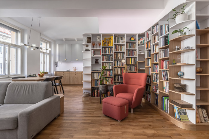 Byt, který spojuje. Má měkké hrany a oblouky nade dveřmi