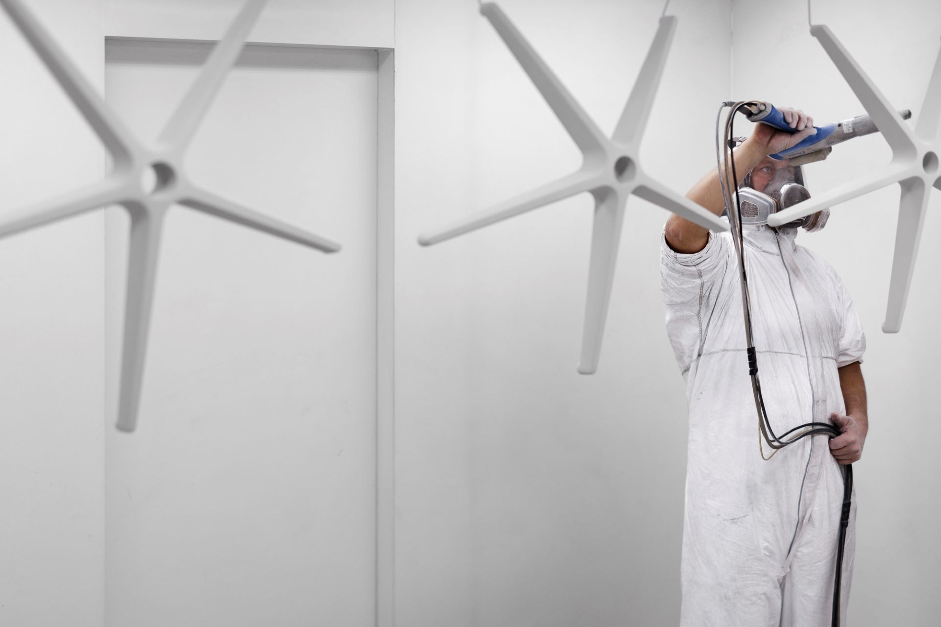 Desítkami let zkušeností do detailu vyladěný výrobní proces kombinuje nejmodernější technologie s poctivým ručním řemeslem. Tým švadlen si zakládá na milimetrové přesnosti, v čalounické dílně se pak potah židle natáhne bez jediného záhybu. Židle si v LD Seating sami plní polyuretanovou pěnou a vyrábí si i vlastní ocelové podnože, vložky pro konstrukci skořepin a další ocelové doplňky. V práškové lakovně se design židlí ladí podle přání zákazníků.