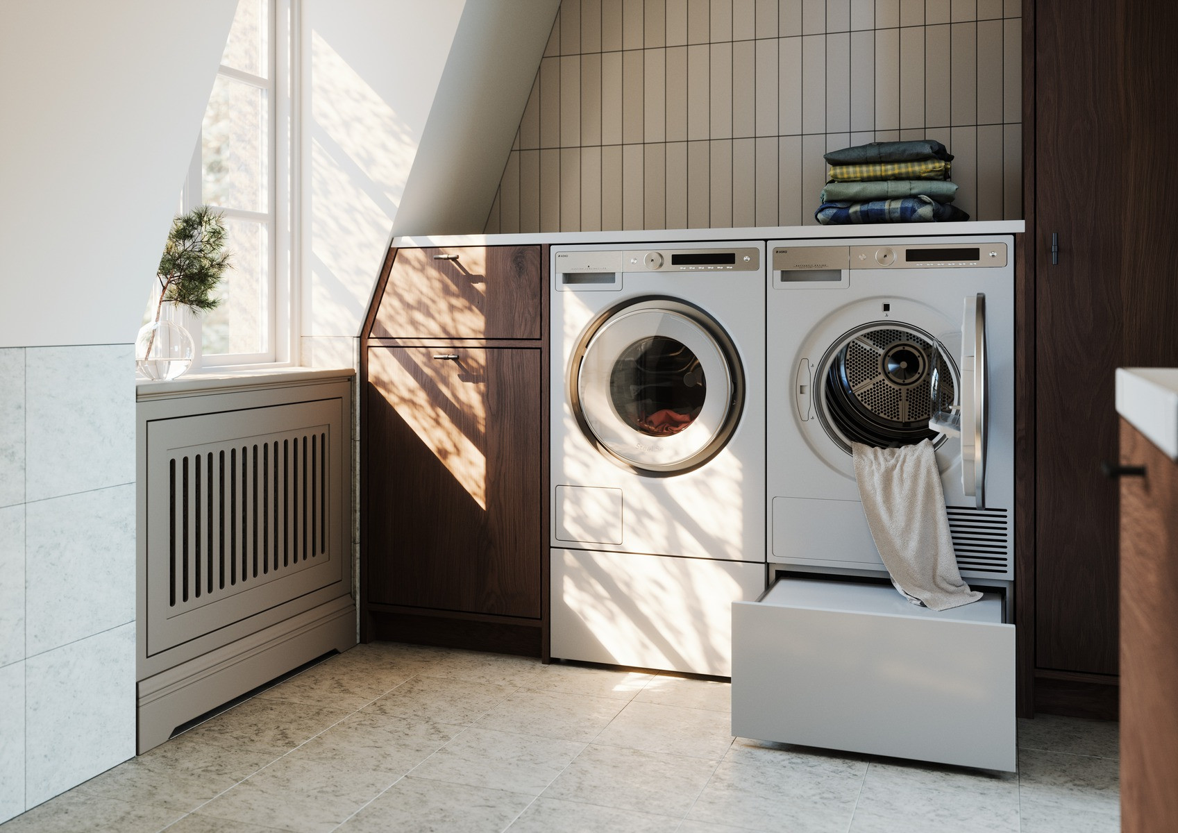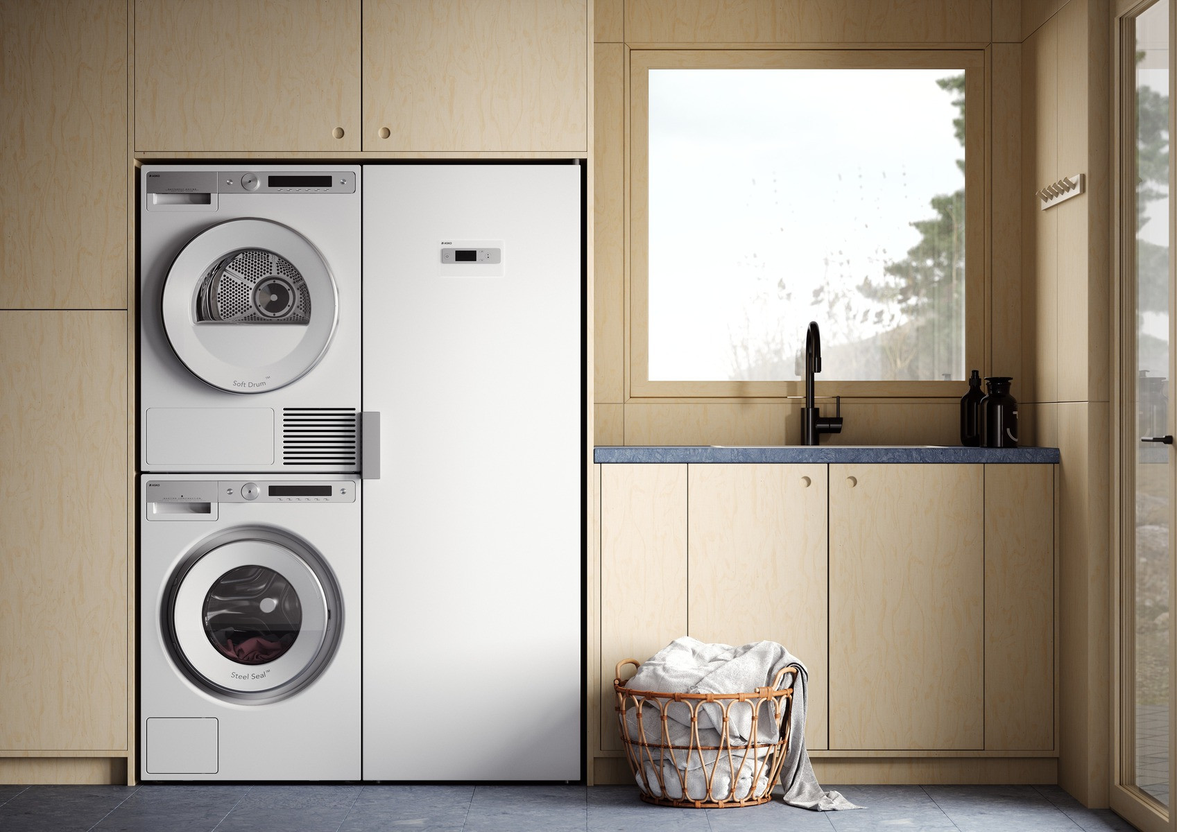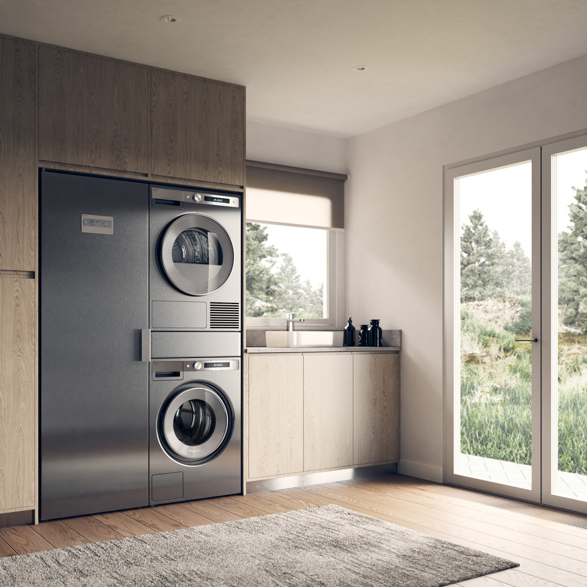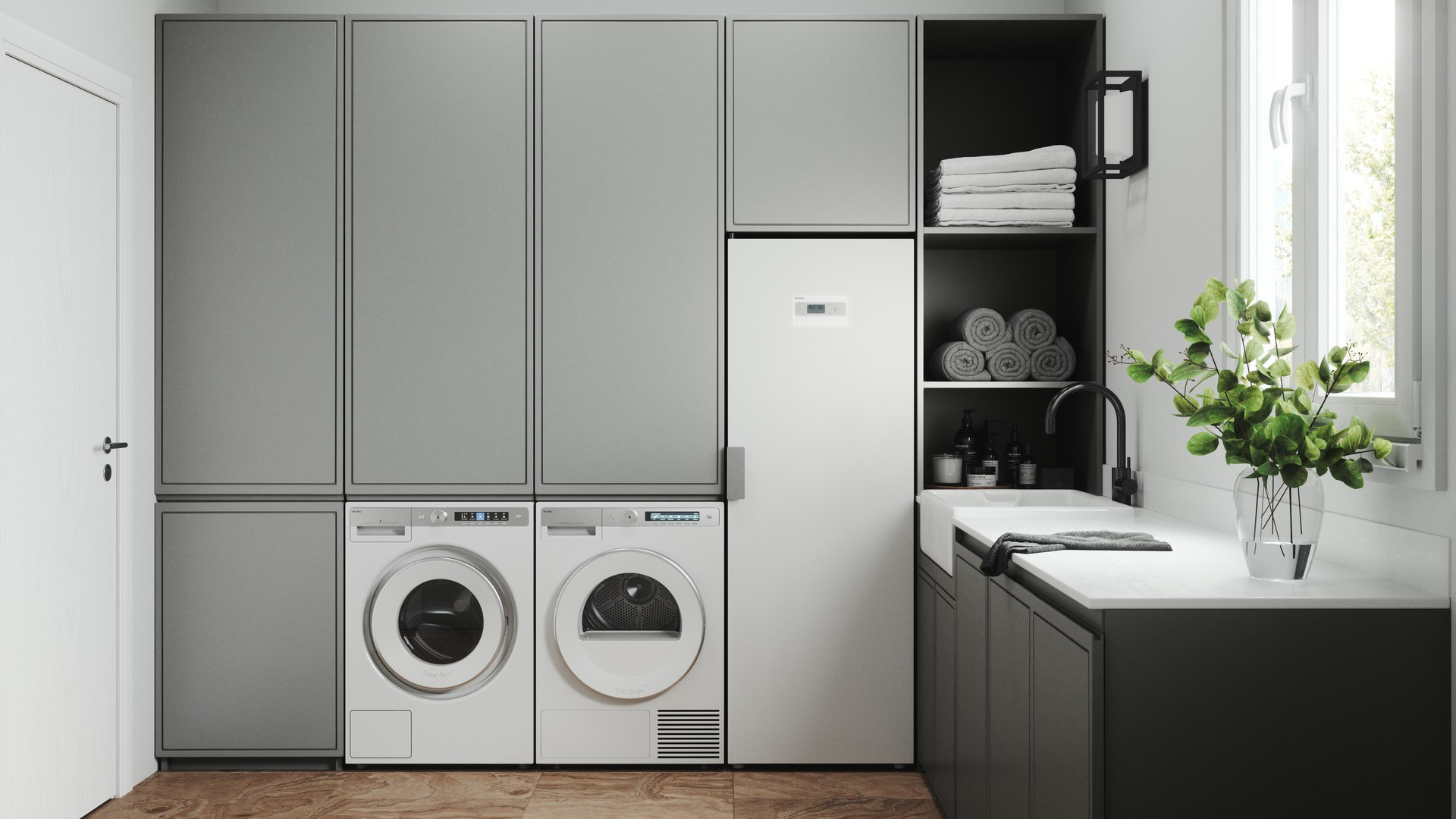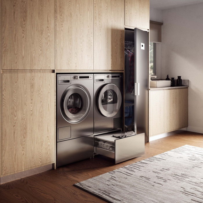 Tento systém péče o prádlo je navržen s ohledem na komfort, úsporu času a prostoru, a to vše v elegantním skandinávském designu.