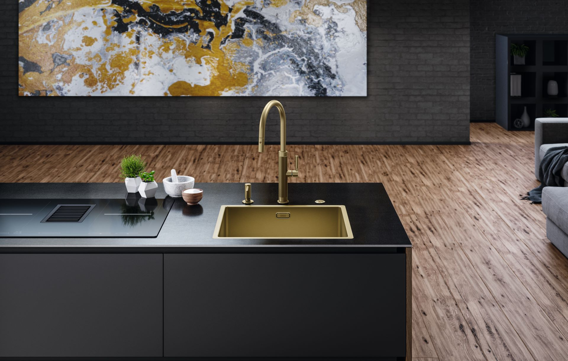 Kuchyňská baterie Mythos Masterpiece je nejen estetická, ale také funkční: laminární proud nabízí výkonné a účinné mytí i veškerých nečistot a vytahovací koncovka s přepínáním sprchy a proudu dosáhne kamkoli, kam je potřeba.
