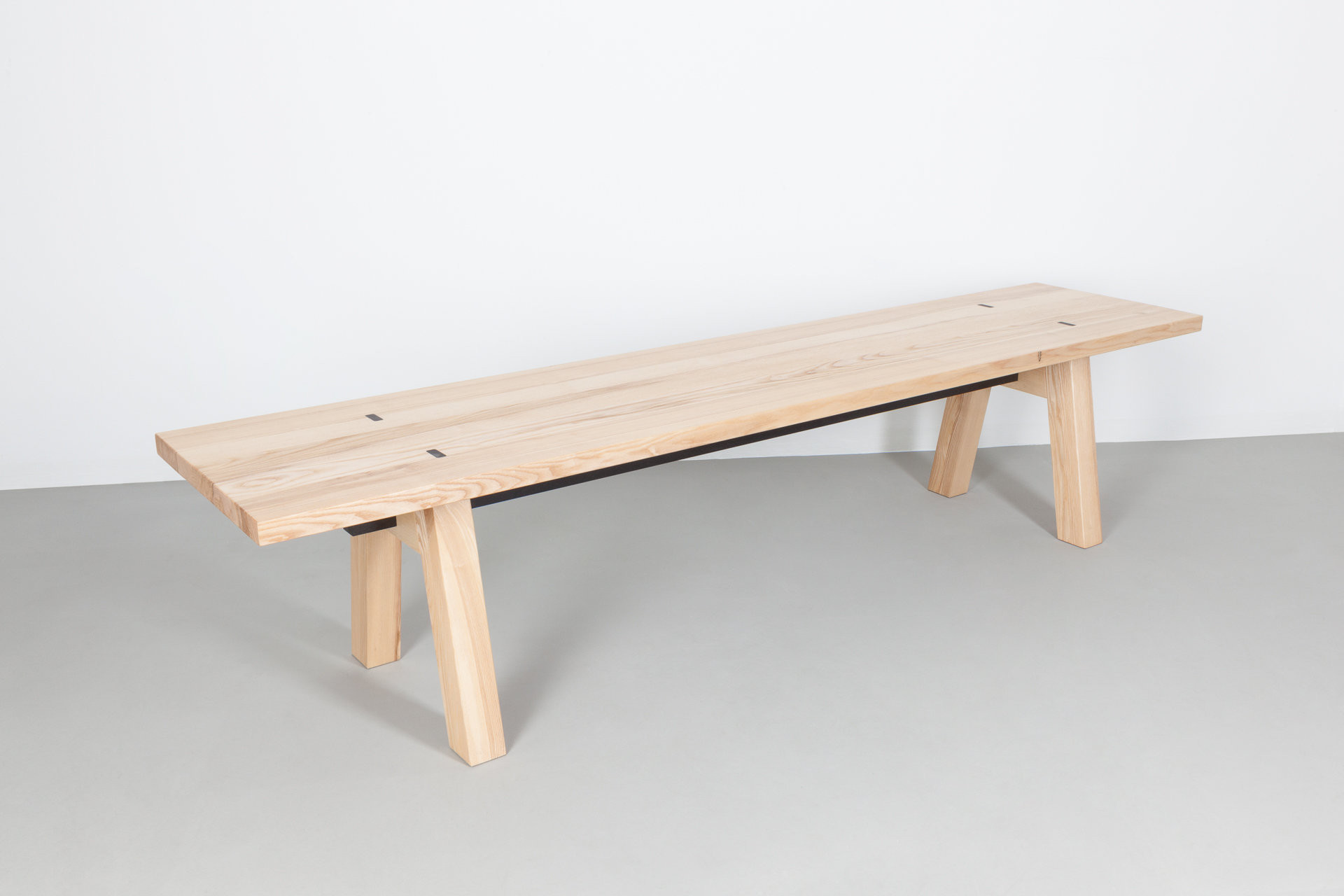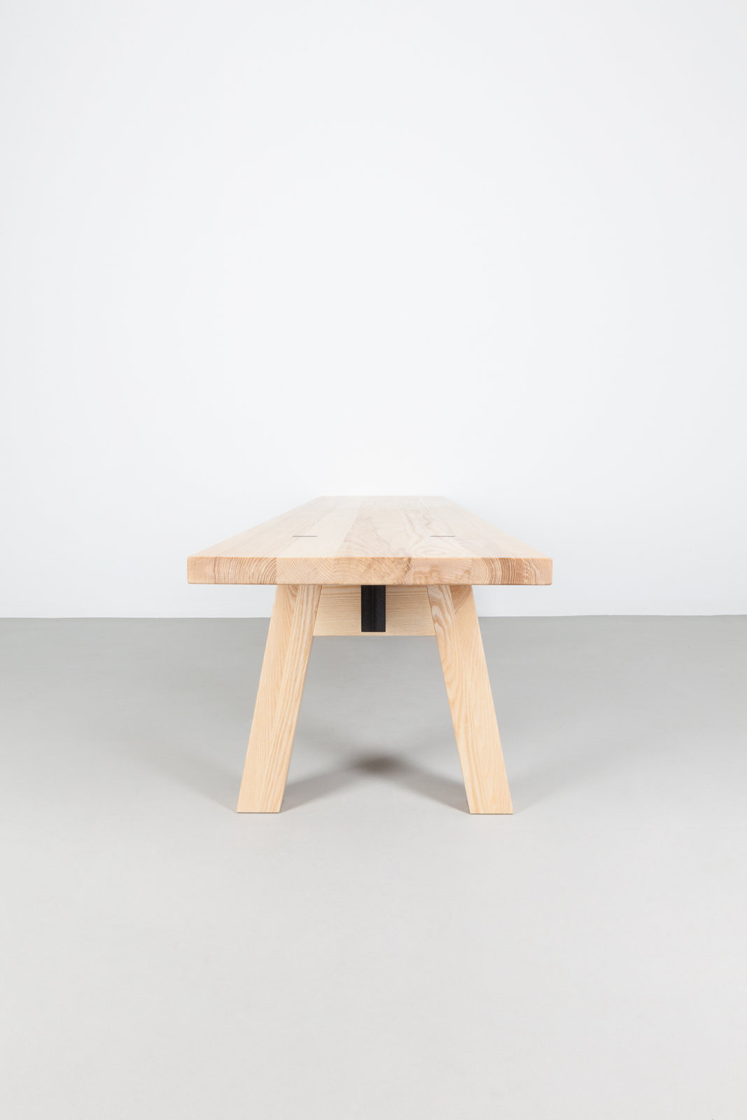 Lavice z masivního jasanu nebo dubu, s černou MDF konstrukcí, v sobě propojuje tradiční řemeslné základy s prostým a čistým designem. Je připravena být tam, kde se tvoří myšlenky i mezilidské vztahy. Spolu s jednacím stolem TAK pojme celý tým.
