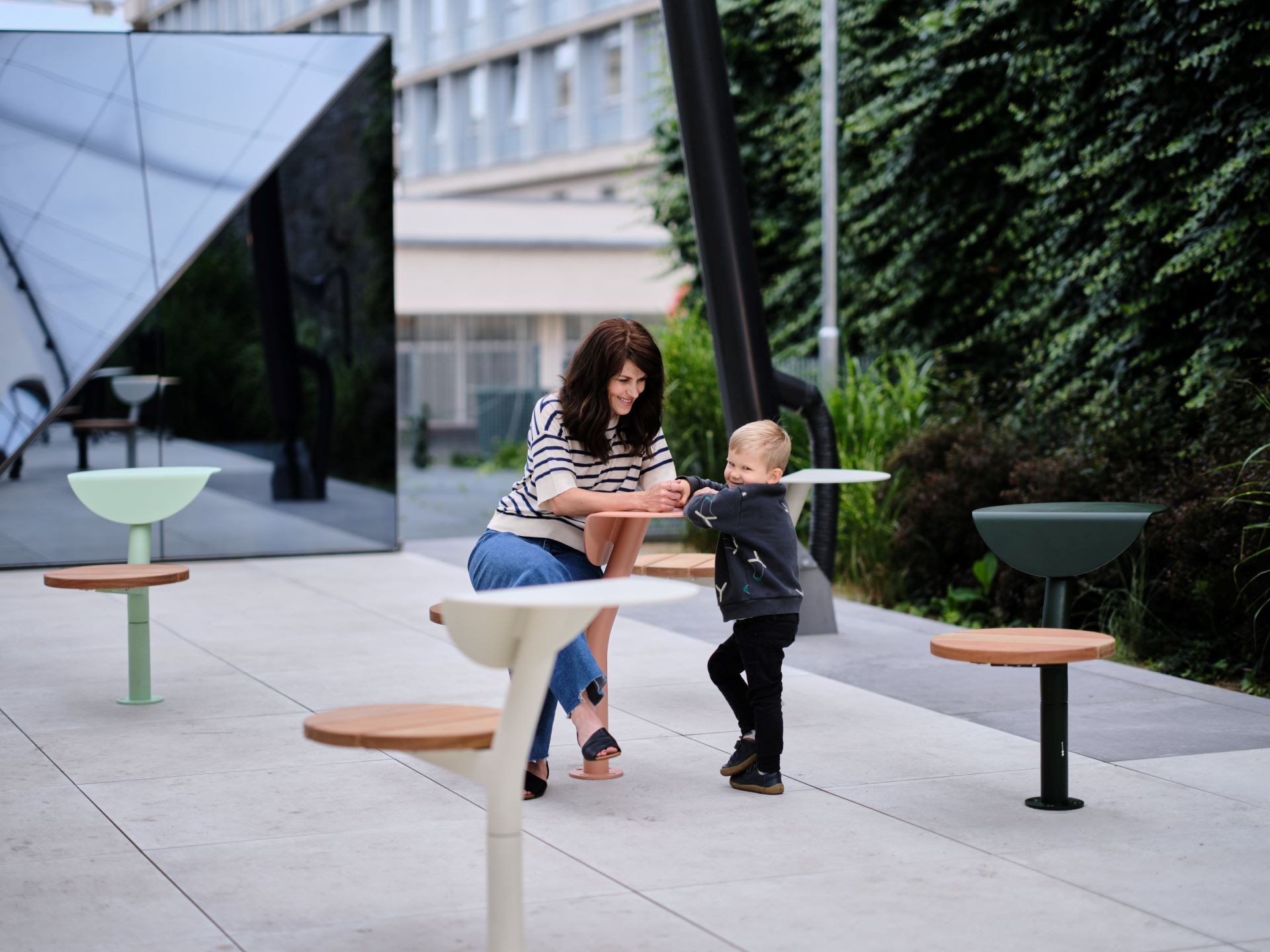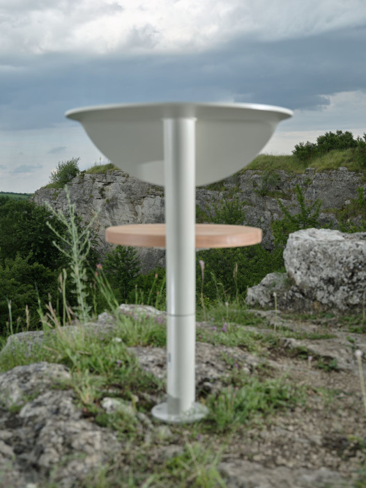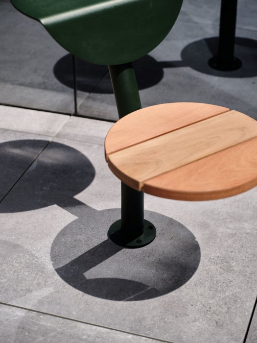 Dlouhé signály Morseovy abecedy se střídají s krátkými zastávkami. Kolekce Morse je rozšířena o solitérní prvek Morse Dot. Bez jasně udaného směru se poměrně často dějí ty nejlepší momenty v našich životech. Každé náhodné otočení může znamenat náhodné setkání. Nechte se vést hravým prvkem s otočnou variantou. Ocelová noha s dřevěným sedadlem ústí do opěradla a stolku v jednom. Pro rychlý meeting, krátký oběd, pozorování okolí či moment odpočinku. Morse Dot se stane mezihrou ve veřejném prostoru a vy můžete hrát podle vašich vlastních pravidel. V každé situaci a každém prostředí.