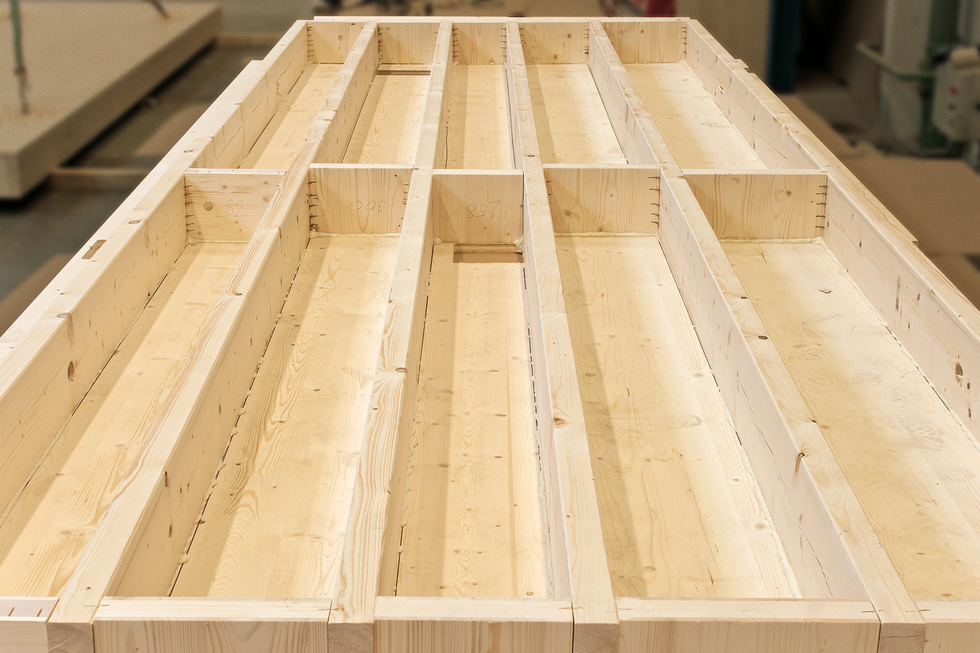 Elementy s volitelným stupněm prefabrikace, tvořené spodní deskou SWP a nosnými hranoly (KVH, DUO, TRIO, BSH aj.). Dutiny lze vyplnit izolací. Nabízí vysokou flexibilitu konstrukce a difuzní otevřenost.