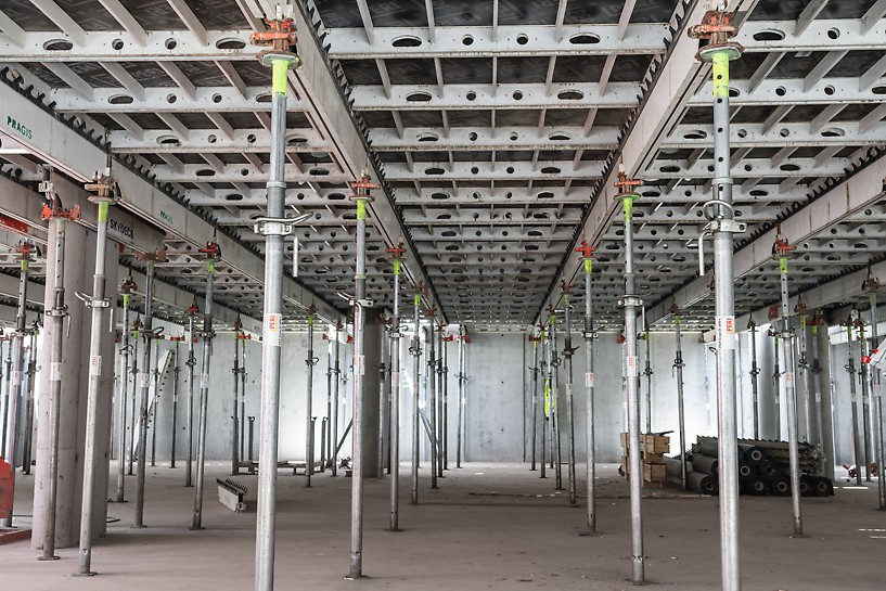 Bezpečnost je zajištěna díky stabilním vyloženým nosníkům a lávkám, které chrání pracovníky u okrajů stropů. Systém také umožňuje flexibilní dorovnání šířky a délky plochy a snadnou změnu směru pokládky panelů, což zvyšuje jeho univerzálnost. S redukovaným množstvím stojek (0,29 stojky/m² ve standardním poli) zůstává prostor pod bedněním volný pro snadný pohyb a manipulaci s materiálem.