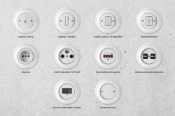Kolekce zahrnuje kompletní sortiment: klasické i datové zásuvky, TV/R/SAT, reproduktorové i USB nabíjecí. Pro vícenásobné sestavy jsou k dispozici rozpěrky zajišťující přesnou rozteč.
