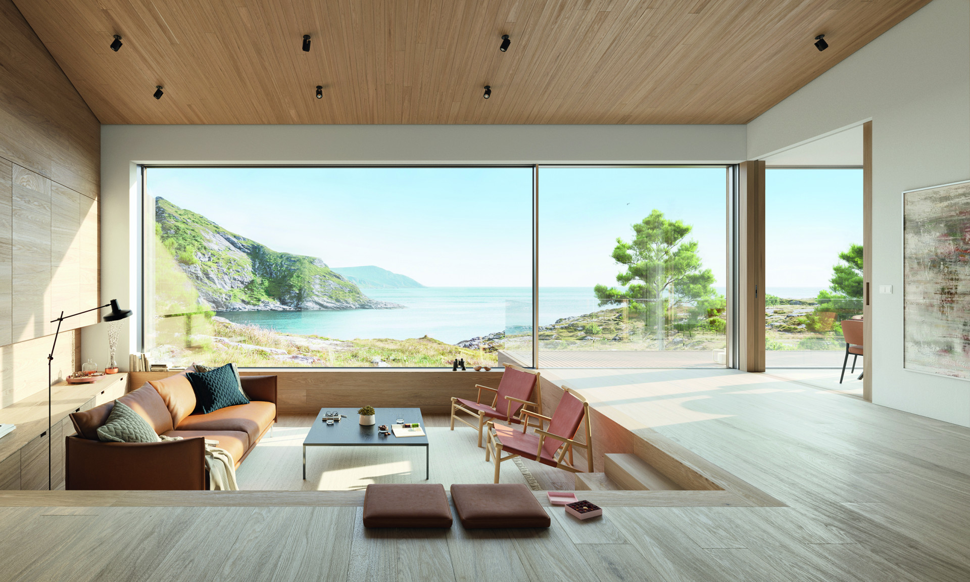V nové generaci hliníkových posuvných systémů Schüco AS PD 75.HI (Panorama Design) skloubilo Schüco minimalismus s maximální funkčností. Nová technologie zdvižně-posuvné konstrukce poprvé umožnila zkombinovat skrytý rám se zapuštěným prahem (Performance Line), poprvé se tedy transparentnost Panorama Design a bezbariérový přechod vzájemně nevylučují.
