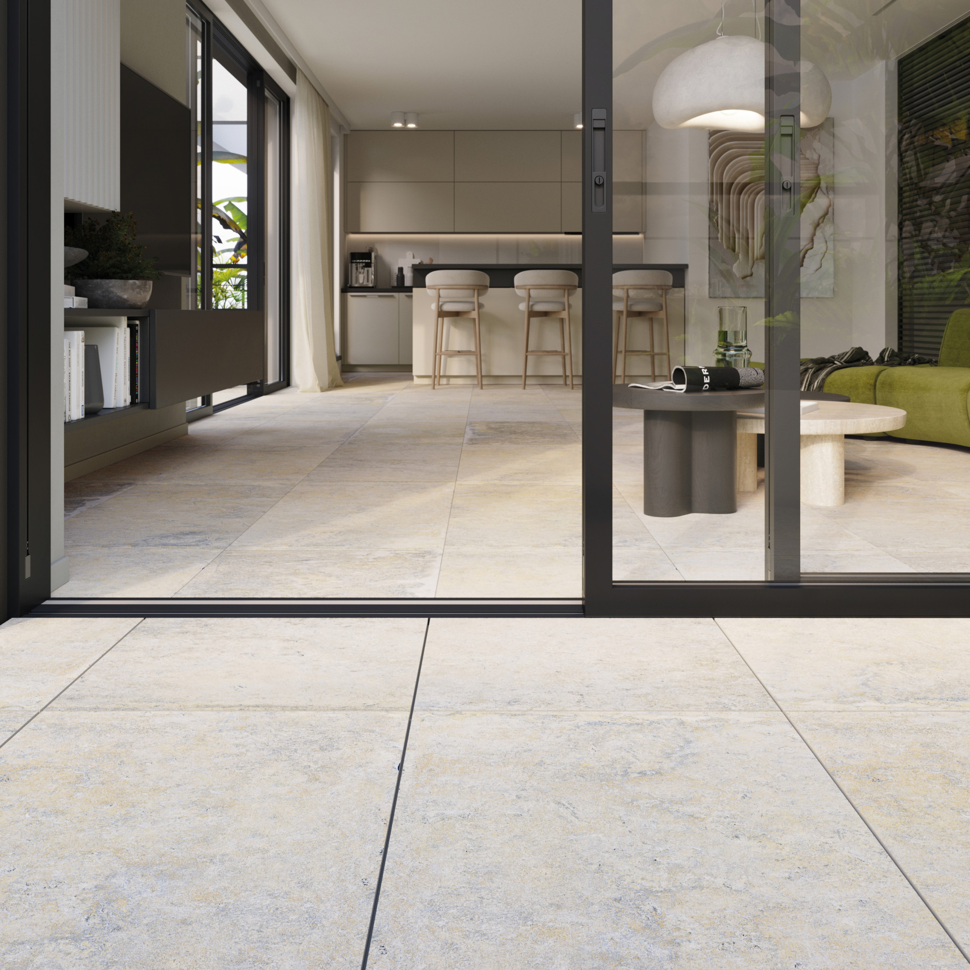 Velkoformátové prvky s nepravidelným rozvržením dekoru vytvářejí souvislou plochu, která působí organicky a nenápadně. Díky vyvážené barevnosti lze dlaždice snadno začlenit do interiéru i exteriéru a navázat jimi například obytný prostor na zahradu. MIXTONE tak nabízí vizuální kvalitu přírodního materiálu, zároveň ale zachovává praktické vlastnosti a udržitelnost keramických povrchů.