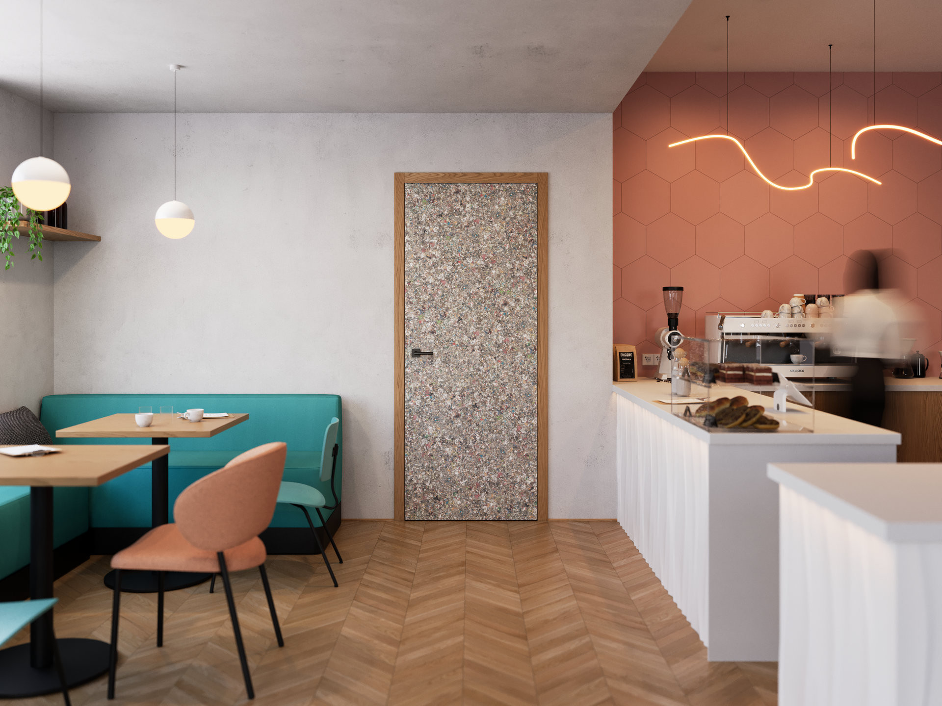 Dveře z upcyklovaného materiálu NANOVERDE kombinují udržitelný přístup a moderní estetiku. Jedny dveře vzniknou z 1000 recyklovaných nápojových kartonů, rám je vyroben z certifikovaného dřeva a výplň tvoří 100% lněná deska s vynikajícími termoizolačními a akustickými vlastnostmi, při výrobě se nepoužívají syntetická pojidla, ani laky. Povrch dveří je ošetřen bezbarvým olejem zaručujícím pochozí odolnost.