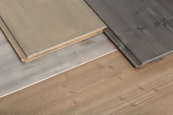 Třívrstvé desky s perem a drážkou, vyrobené s mimořádnou pečlivostí a uzavřeným povrchem. Povrch může být kartáčovaný s metalickou lazurou Adler Lignovit Platin.