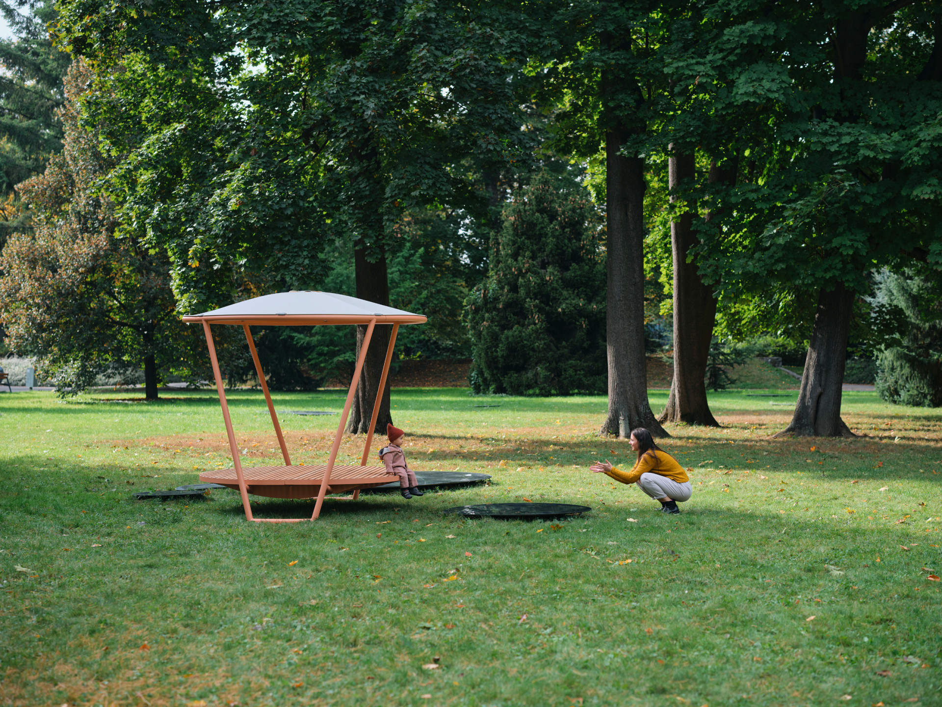 Přístřešek ladně přistane nad různými druhy městského mobiliáře a stává se alternativou ke standardním slunečníkům s centrální nohou. Ve srovnání s nimi, stabilní ocelová konstrukce eliminuje problémy při nepříznivém počasí či riziko vandalismu. Ve velkém množství zemí může být přístřešek instalován do parků, na promenády i do poloveřejných prostor bez potřeby každodenní manipulace. Doplněný o levitující kruhovou platformu poskytne úkryt pro ničím nerušený odpočinek.