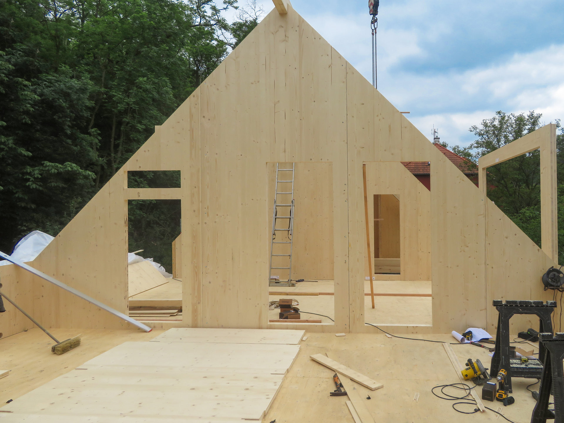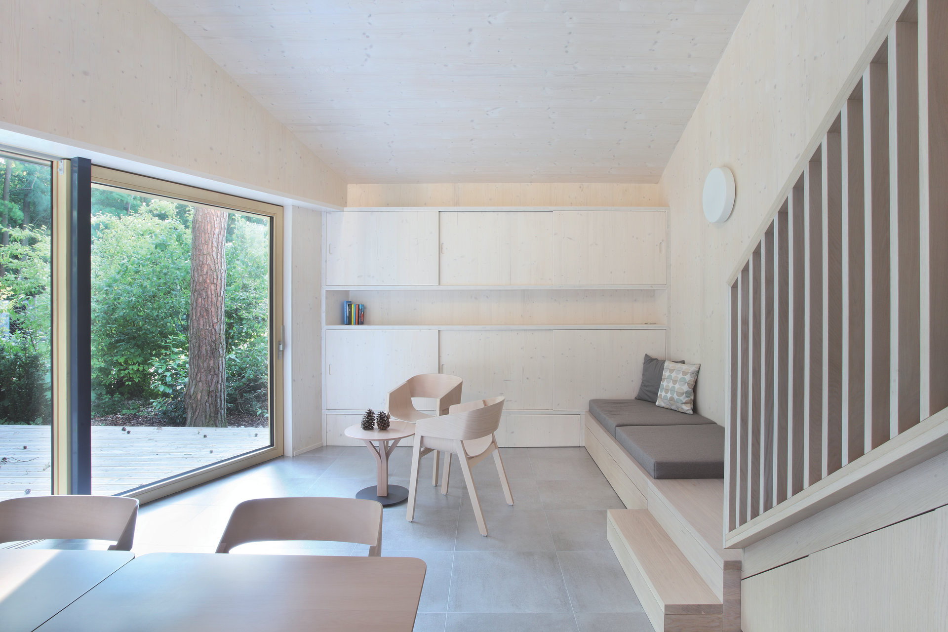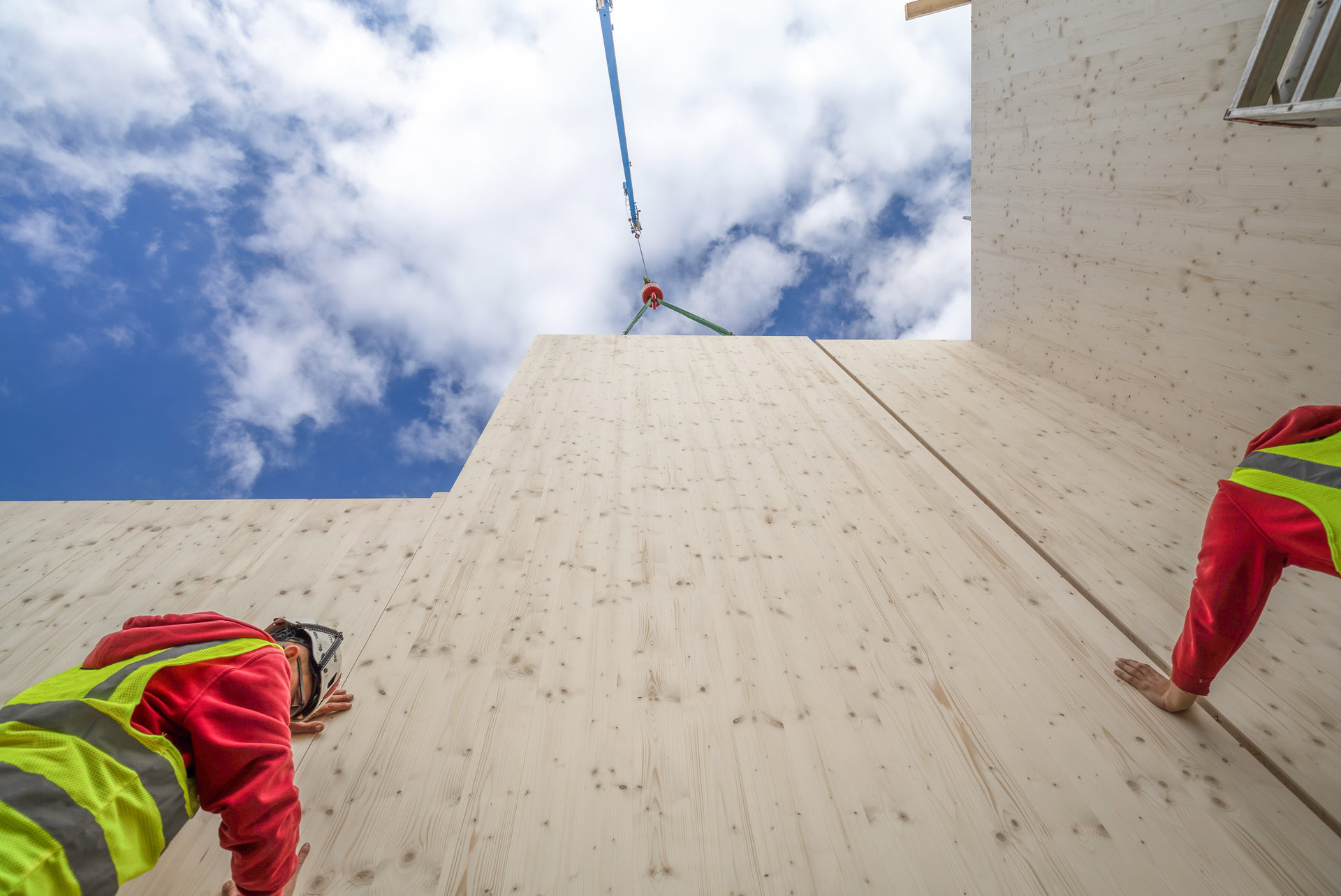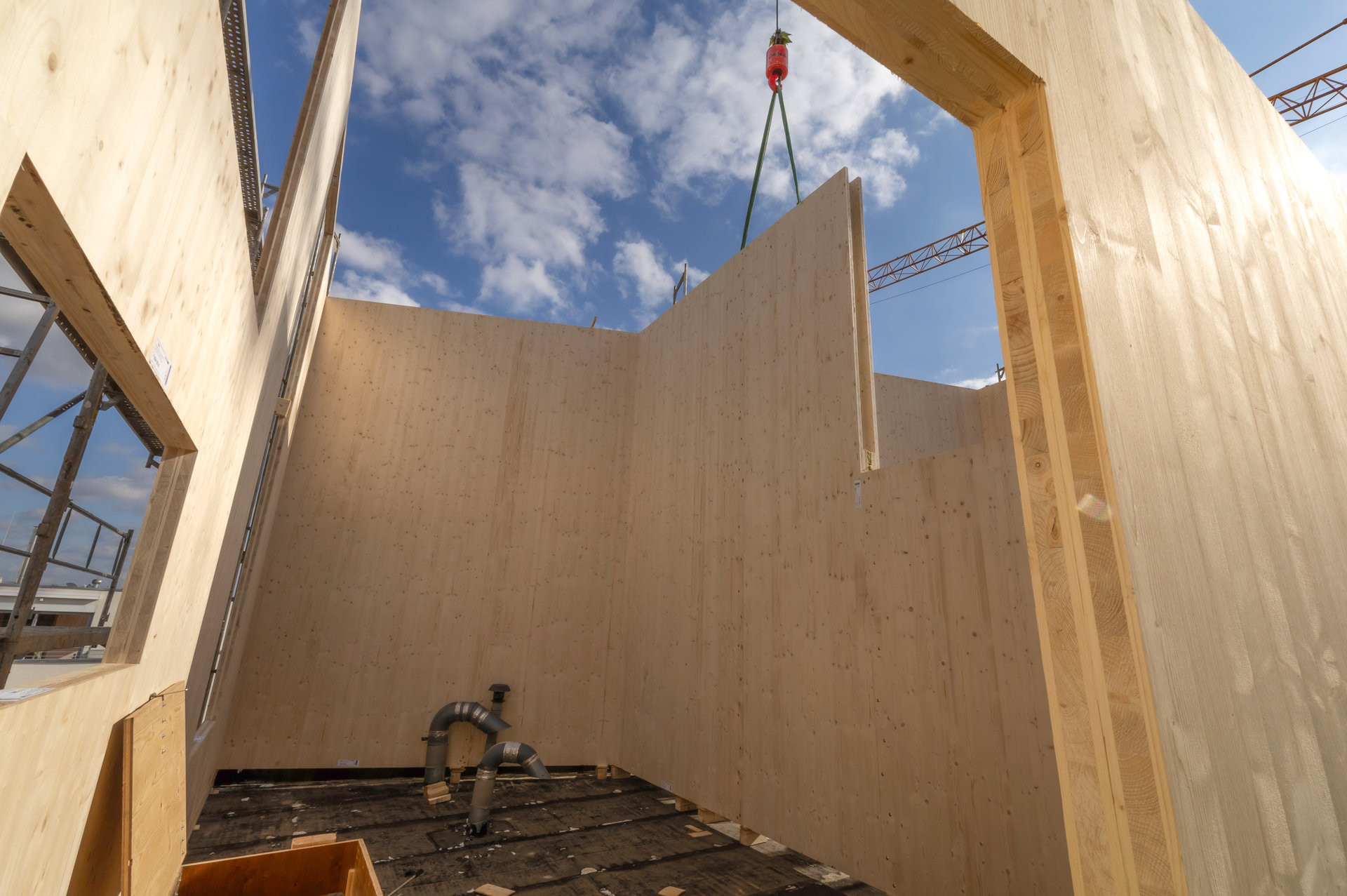 Velkoformátové masivní panely z křížem vrstveného smrkového dřeva (CLT) s výjimečnou pohledovou kvalitou, odolné vůči výsušným trhlinám a tvorbě spár. Každý panel je přesně opracován a umožňuje vedení elektroinstalací uvnitř při zachování vzduchotěsnosti.