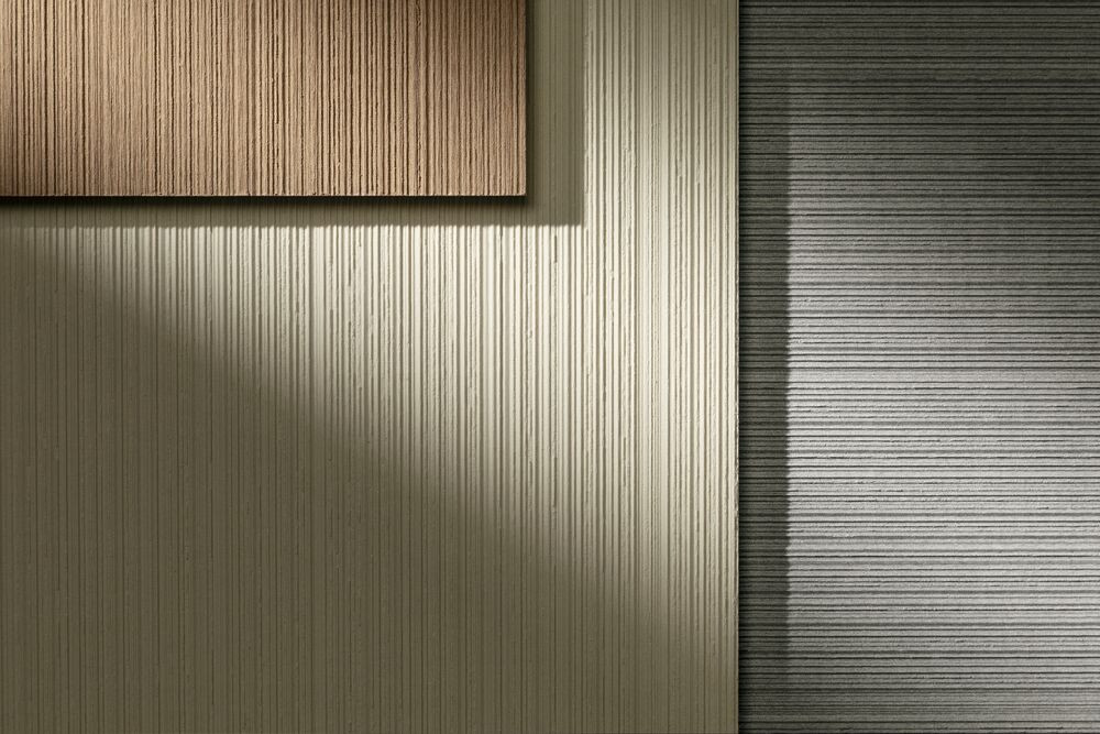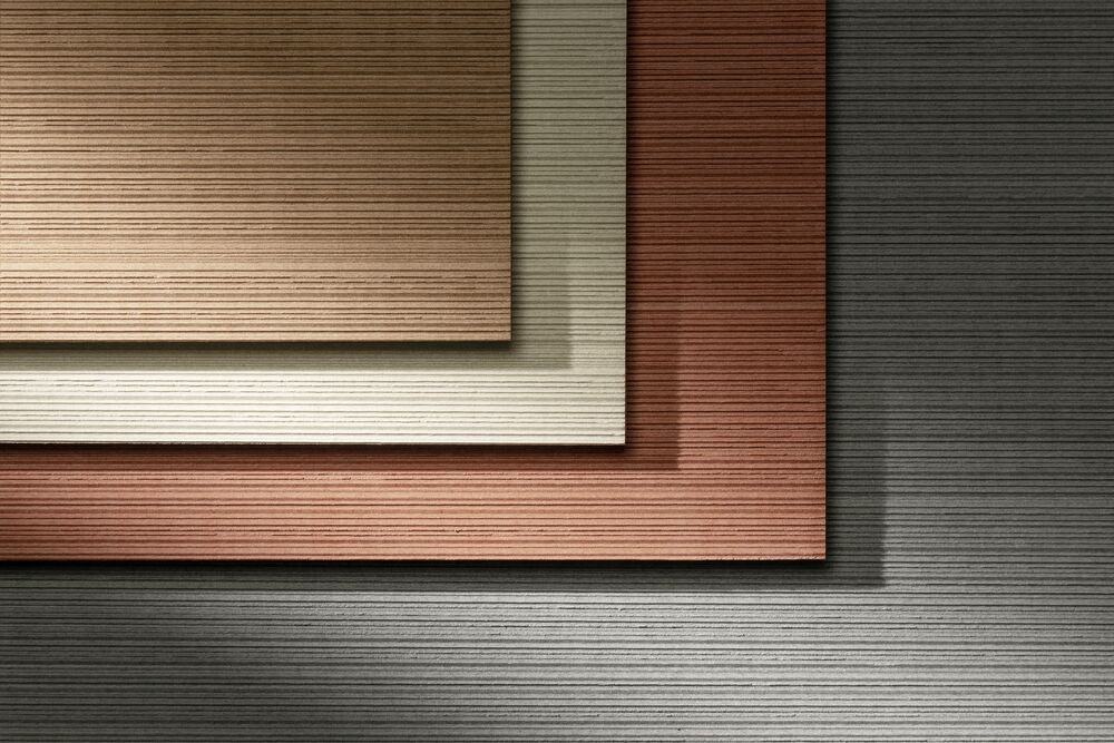 • Desky jsou v celém objemu probarveny a na lícové straně jsou výrazně drážkované. , Povrch desek je ze všech stran opatřen hydrofobní úpravou.