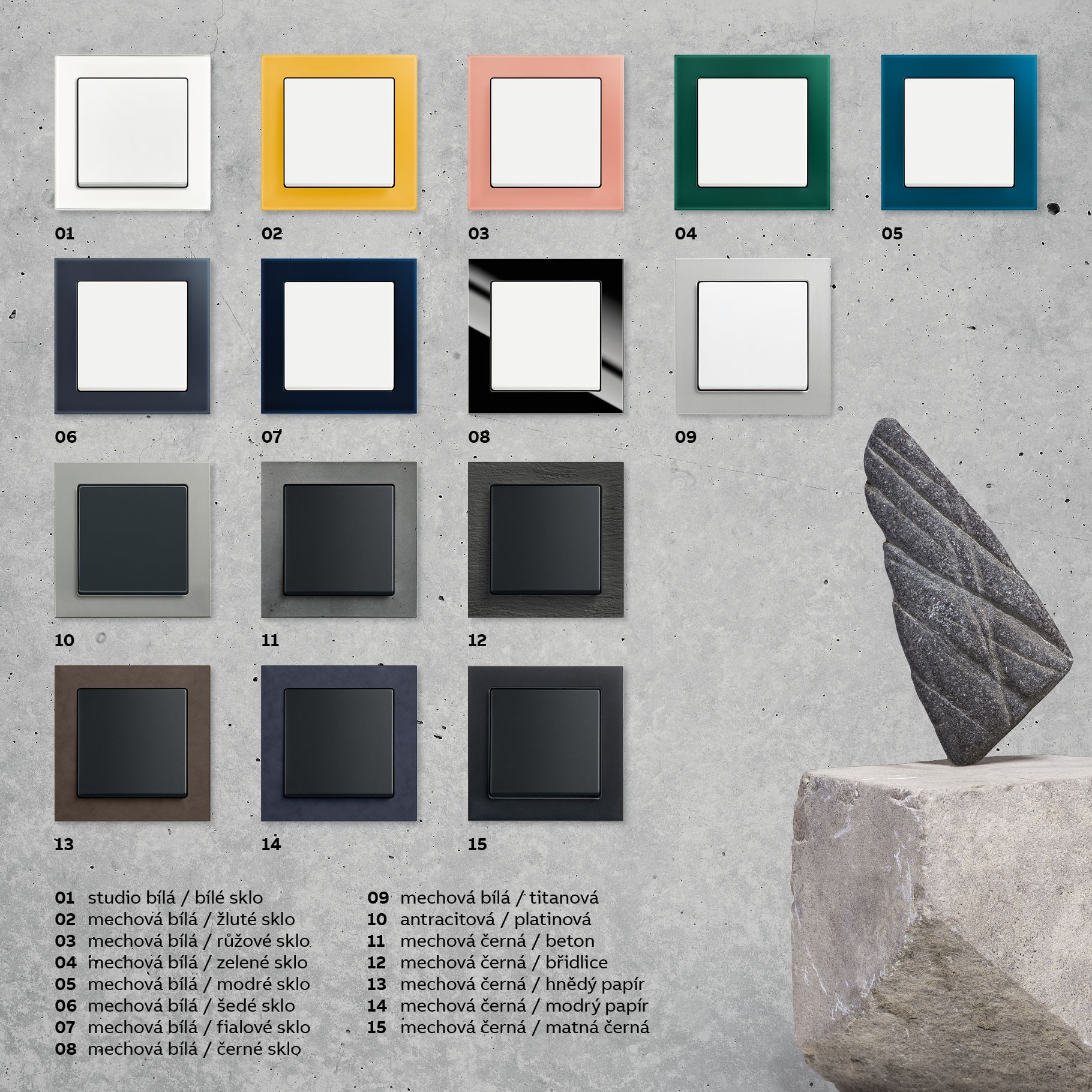 Od standardních materiálů po ušlechtilou ocel, tvrzené sklo, dřevo, beton, břidlici, papír i pravý porcelán. Vysoce lesklé nebo jemné matné či organické povrchy. ABB nabízí 17 designových řad řad vypínačů a zásuvek ve více než 100 barevných a materiálových provedení.