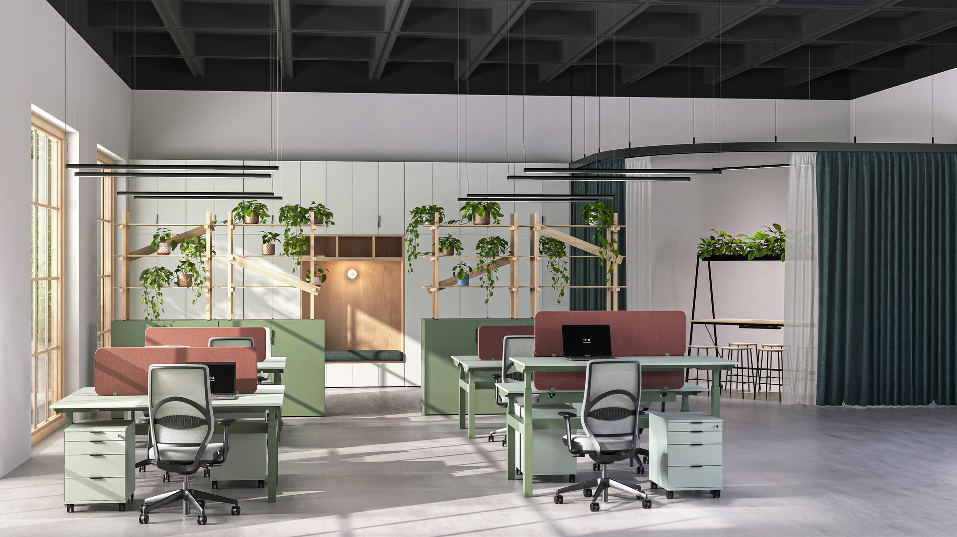 SETUP nabízí variabilní řešení pro kancelářské prostory, které reflektuje současné nároky na flexibilitu, akustiku i estetiku pracovního prostředí.