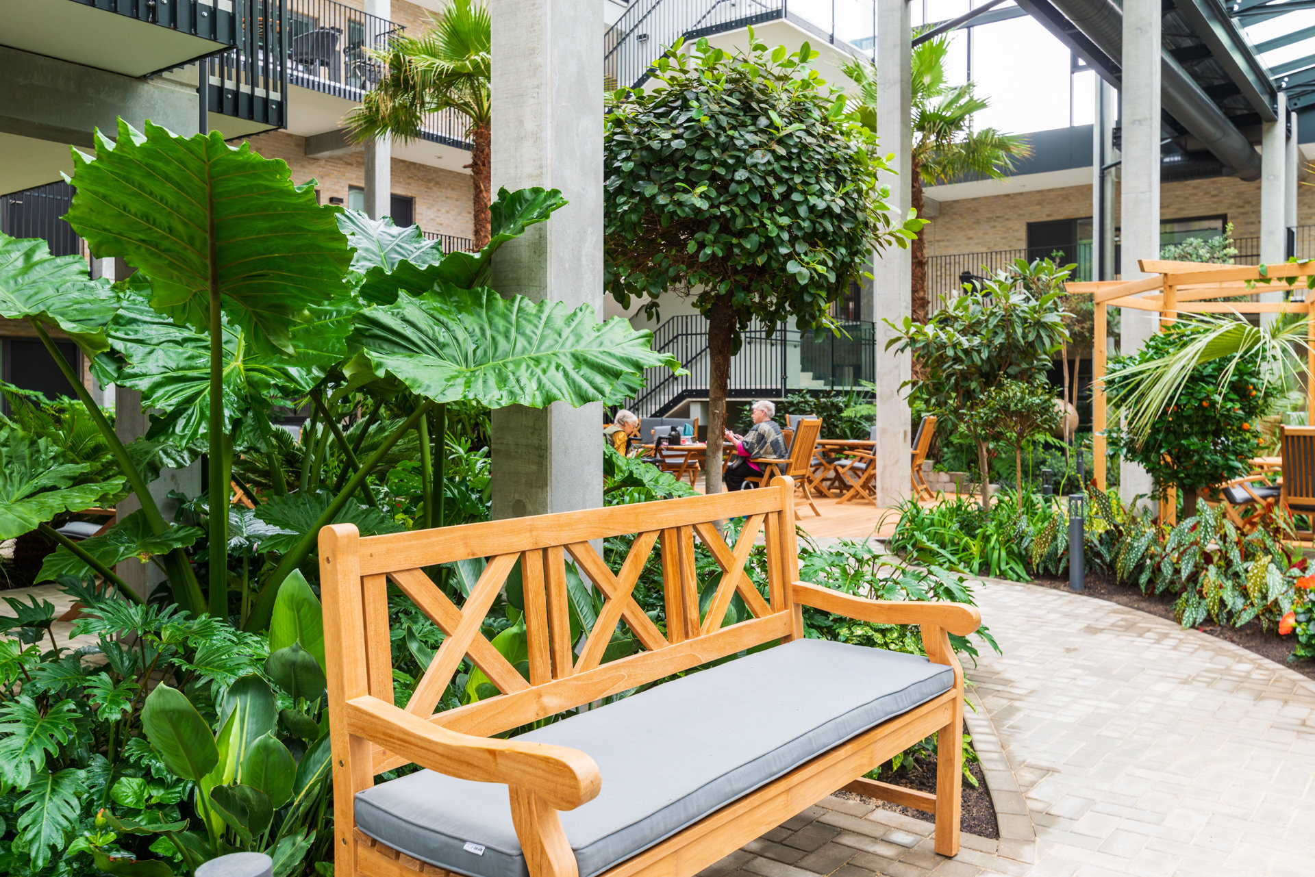 Interiér, který dýchá – prostor, kde se architektura snoubí s bujnou tropickou vegetací, vytváří neopakovatelnou atmosféru a přirozeně přitahuje pozornost i zájem.