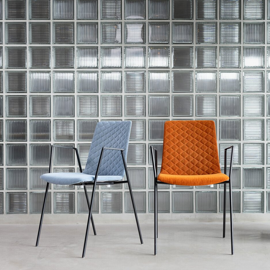 Spojování do řad: Jednoduché spojování sousedních nohou židlí, patentovaný princip, kompatibilní s područkami.