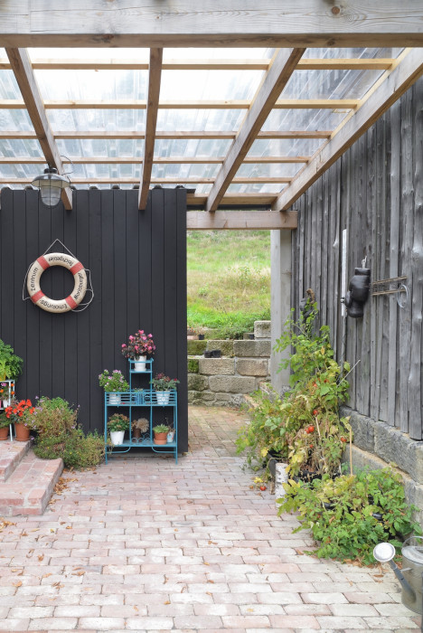 Dřevěná, pohltivě monochromatická kůže domu příbuzná plášti stodoly, je klidným pozadím proměnlivě barevných dějů kolem. Stavebník je sběratel, artefakty se kupí. Nové vrstvy se podivuhodně rychle prolínají a překrývají se starými. Spoje jsou bezešvé.Je tu mnoho odkoukaných původních motivů a též pár posunů a aktualizací. Zastřešním prostoru mezi stodolou a domem byl nastolen jejich nový, bližší vztah. Vzniklé závětří nabídlo přesun hlavního vstupu z boční fasády do štítu. Jihovýchodní fasáda s původním vstupem se uvolnila pro užší spojení vnitřku s vnějškem.