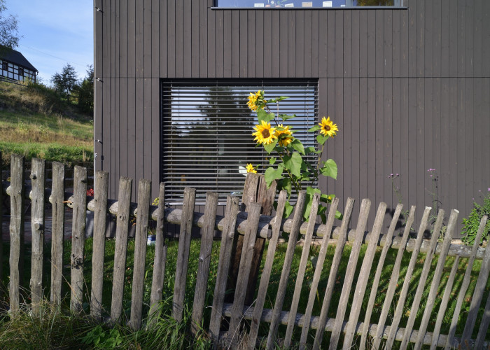 Navrhli jsme proto dům nový, následujíc přitom pozičně a měřítkem převědčivé historické uspořádání lípa / dům / stodola. Oproti krásným, ale stále vlhkým masivním pískovcovým stěnám a malým místnostem mezi nimi, nám konstrukce ze současných materiálů umožnily vytvořit relativně velkorysé a dle potřeby otevřené prostory v objemu a proporcích podobných původnímu domu.