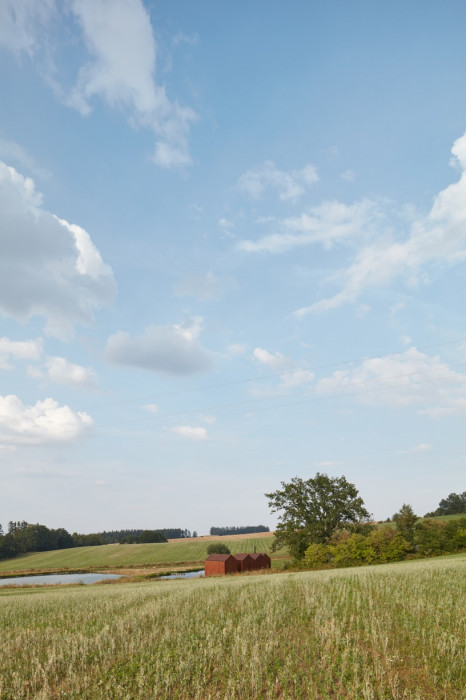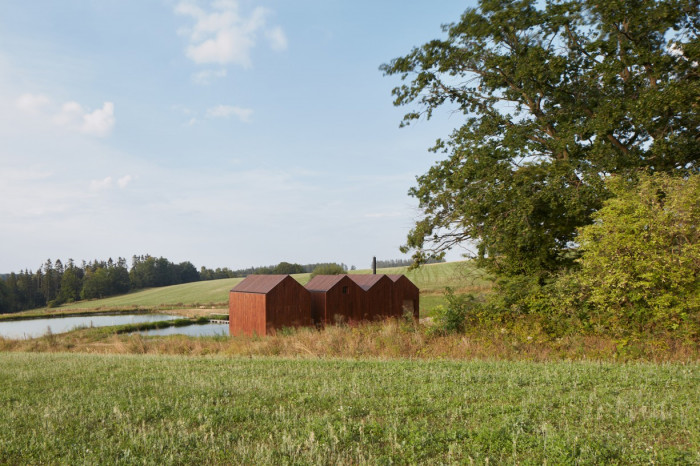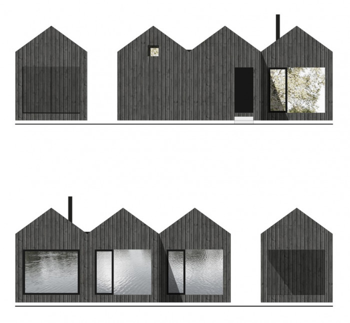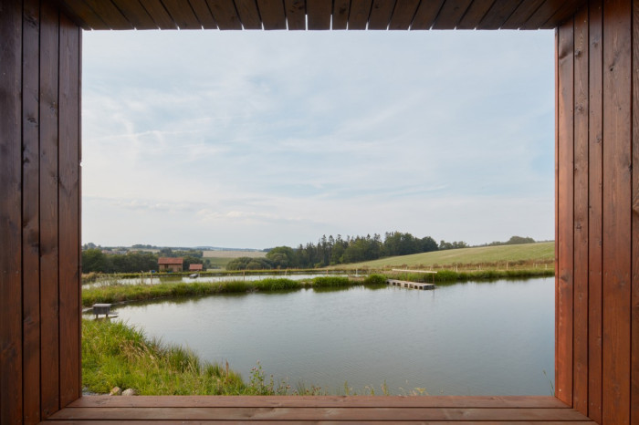 Inspirováni tradičními rybářskými boudami navrhujeme na břehu rybníka, zasazeného v malebné krajině Vysočiny, malou chatu. Její velikost limituje legislativa. Maximální zastavěná plocha 50 m2 a maximální výška 5 m vyžadují pro rekreaci rodiny specifické dispoziční uspořádání. Objekt sestává ze čtyř drobných hmot, tří vzájemně propojených a čtvrté odtržené, stojící opodál.