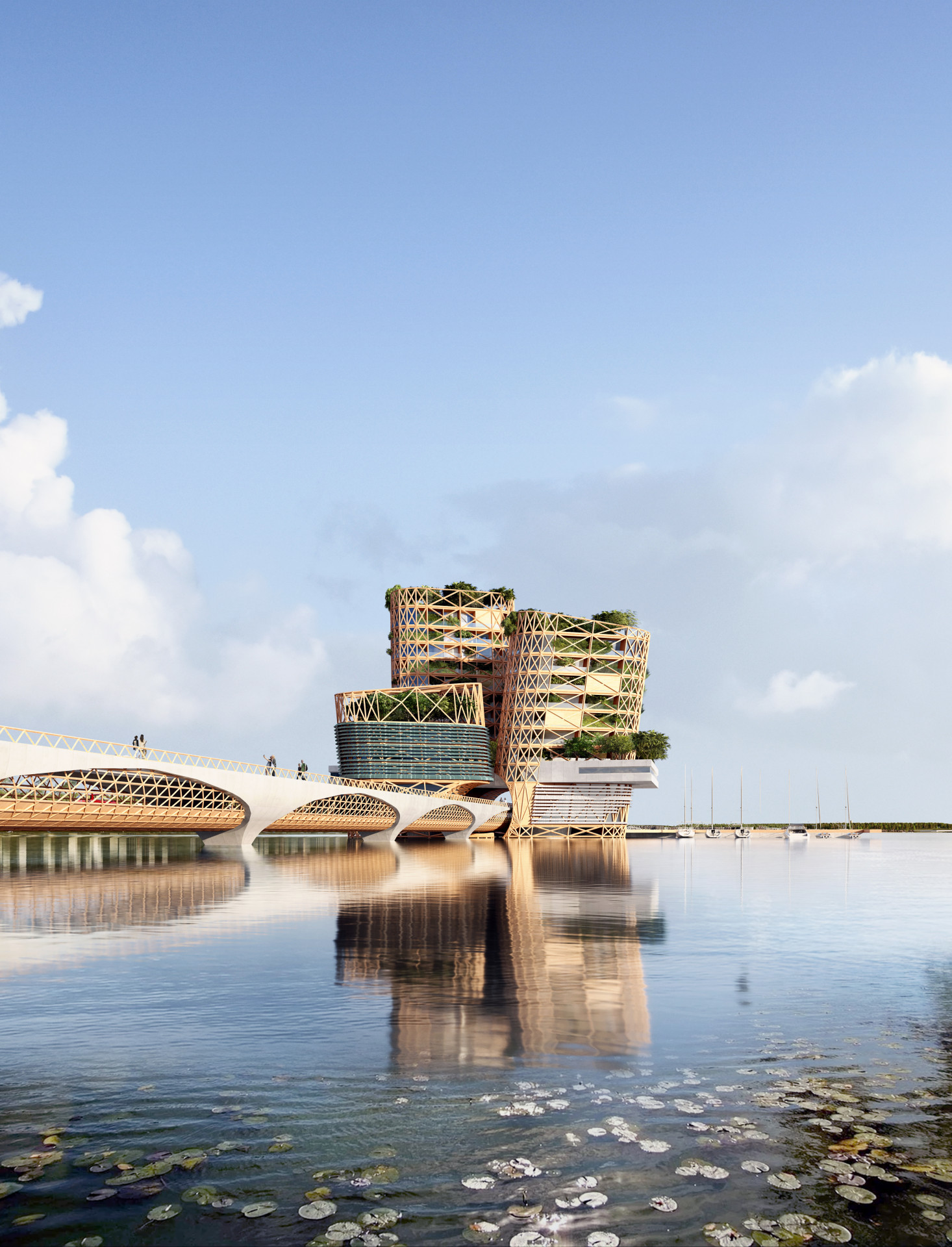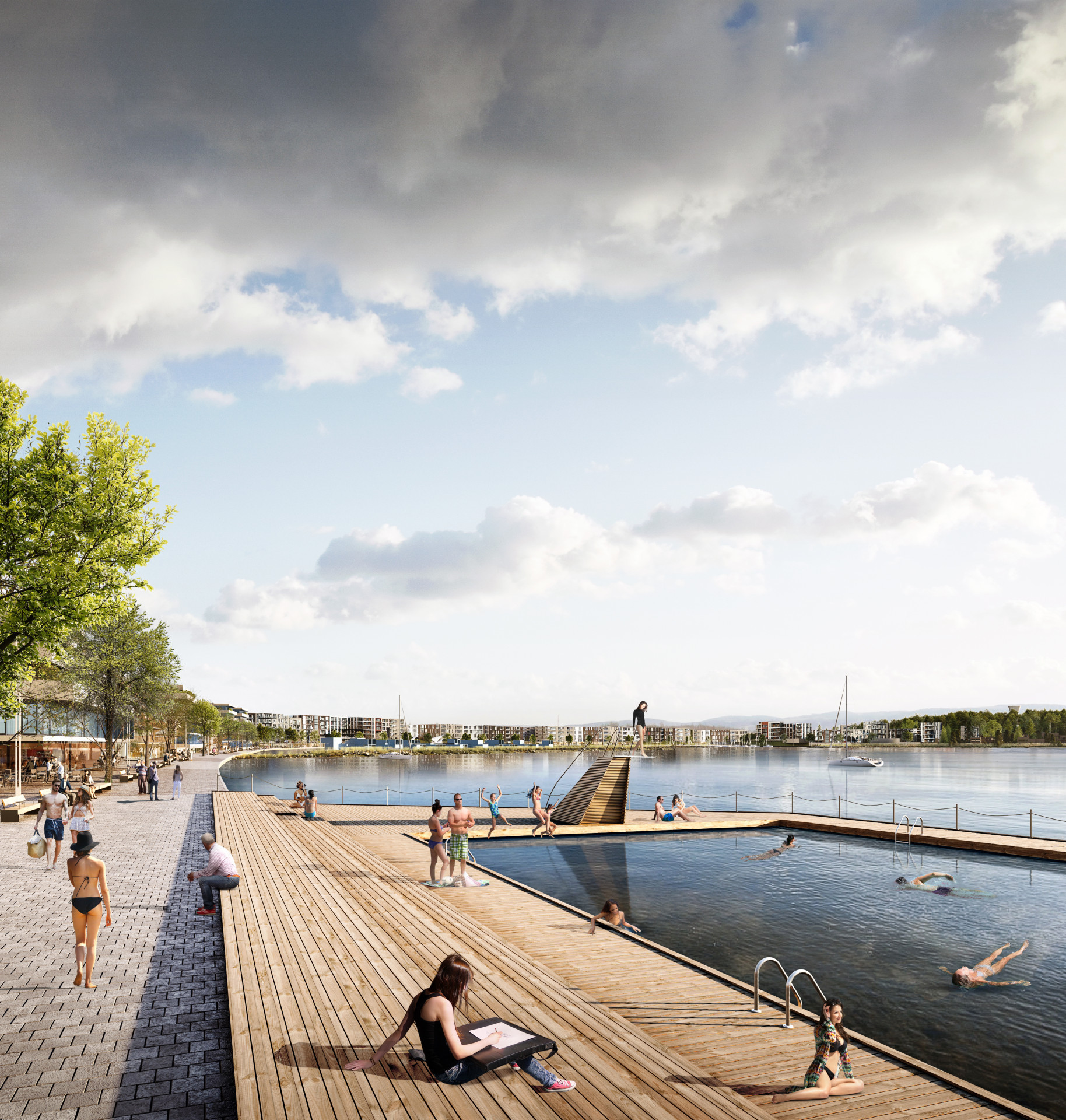 Nová městská čtvrť MĚSTO „PŘÍSTAV“ využívá východní břehy jezera a již připravené terénní a břehové úpravy či dopravní infrastrukturu. Nabízí pestrou škálu bydlení včetně plovoucího bydlení. Chybět nebude marina, přístav, náměstí, molo a pěší promenáda s kvalitním veřejným prostorem, solitérními stromy a stromořadím i živým obchodním parterem.