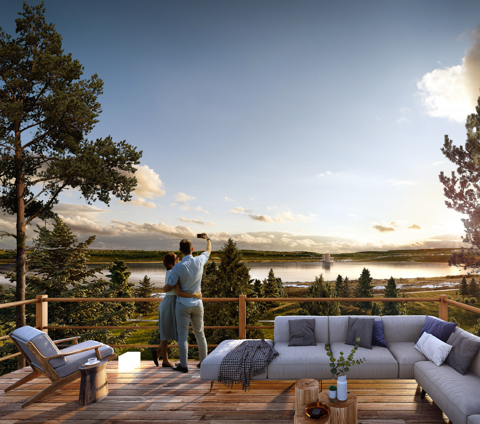 BYDLENÍ NAD JEZEREM nabídne individuální bydlení, které je možné realizovat krok za krokem ještě před samotným naplánováním proměny celé oblasti. Návrh šikovně využívá hrany teras i samotné terasy, které vznikly původní těžbou při pohybu rypadla. Domov s úchvatnými výhledy na jezero a hřebeny hor v pozadí. Tak by se dalo shrnout bydlení u jezera Medard.
