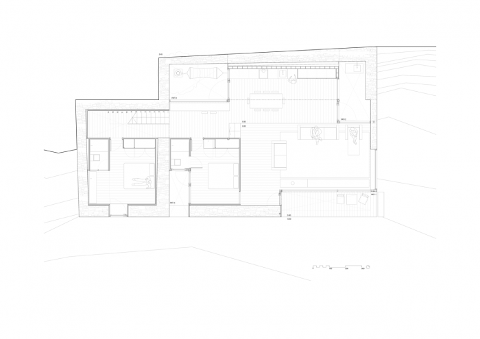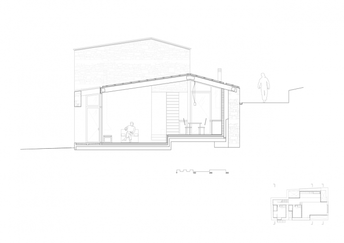 Tento projekt plně využívá jednoho z těchto starých sklepů a udává mu novou formu pro vytvoření moderního domova. Projekt je založen na třech základních principech: respekt vůči původnímu objemu, použití tradičních materiálů a řešení oken a větrání.