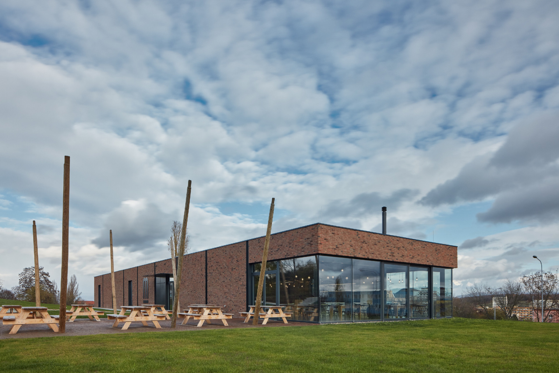 Projekt Minipivovaru Most navazuje na již realizované pivovary Hostivar 1, 2, Trautenberk a Spojovna pro stejnou síť akcionářských vlastníků. Minipivovar se nachází na okraji města Most v severozápadních Čechách v Ústeckém kraji. Stavba minimalistického rázu je postavena na obdélníkovém půdorysu v ulici Pod Koňským vrchem. Složitost města i relativně komplikovaný pozemek nás vedly k tvarově jednoduchému řešení. Fasáda objektu je cihelná s výraznými skleněnými plochami na obou koncích. Na jednom konci budovy je otevřený průhled do interiéru restaurace a na druhém konci stavby je umožněn pohled do technologického zázemí, varny piva. Mezi těmito okny je fasáda objektu vyplněna režným cihelným zdivem.