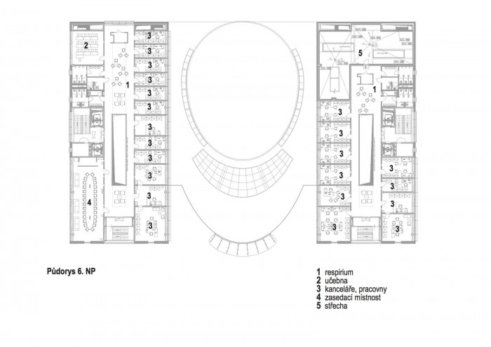 „Při návrhu jsme byli dost ve svěrací kazajce. Museli jsme dodržet šířku i délku bloků, byli jsme limitování prostorem i výškou. Proto vznikly dva bloky kopírující okolní zástavbu, mezi něž jsme umístili vstupní část a aulu,“ uvedla v rozhovoru pro univerzitní časopis Universalia Eva Jiřičná.