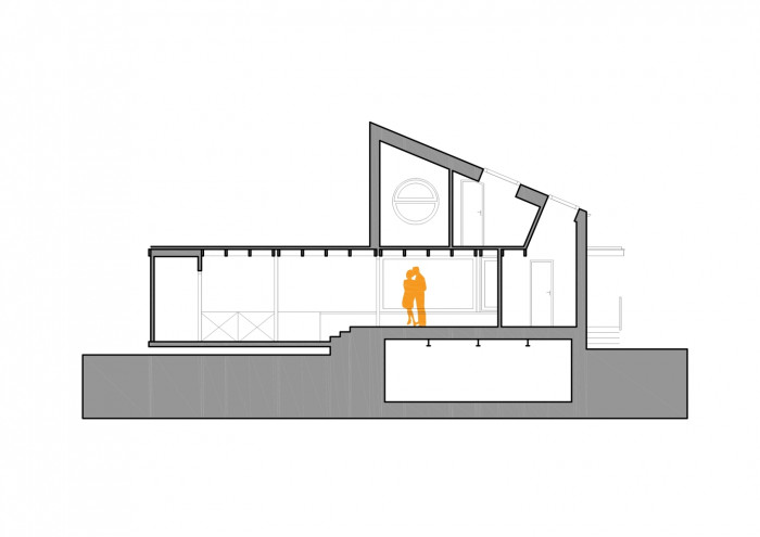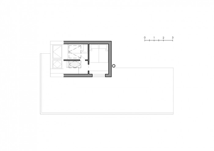 Nad půdorysem obytné části je navrženo spací patro se dvěma malými kajutami. Hmota patra byla volena tak, aby celkově nepůsobila mohutně a elegantně doplnila přízemní lehkou část.