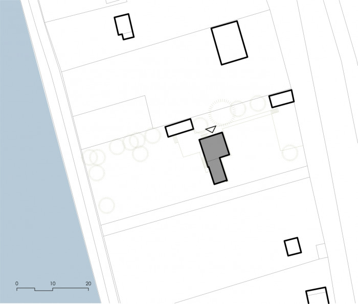 Brná je částí obce Ústí nad Labem. Prostor údolí mezi vysokými kopci, kterým protéká řeka Labe, umožňuje výstavbu podél břehu, nebo ve strmých svazích. Naše parcela se nachází přímo na břehu, mezi řekou a souběžně vedoucí železnicí. Lokalita je zastavěna izolovanými domy a chatami v zeleni. Přáním investora bylo navrhnout na půdorysu stávající chaty nový dům, který umožní rekreaci rodiny od jara do podzimu.