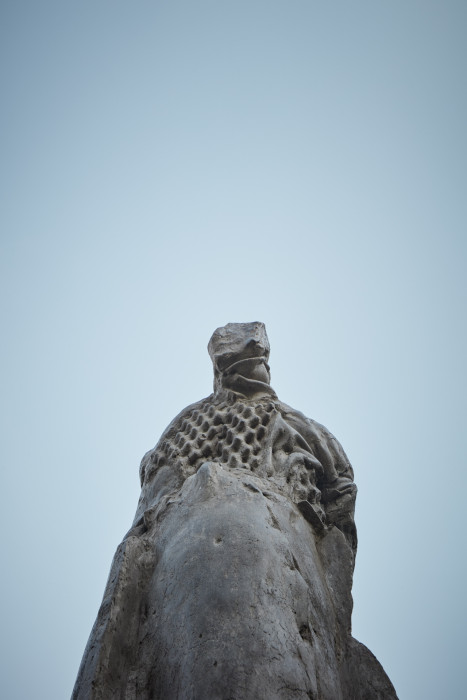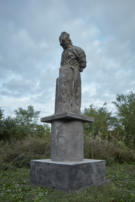 Materiál je probarvený ve hmotě, povrchově patinovaný leptáním a v klíčových detailech ručně dobrušovaný. Do protipostavení k lávce je umístěna socha „Strážce“ z dílny sochaře prof. Jana Hendrycha. Profesor Hendrych je mimojiné předním odborníkem na barokní sochu umístěnou v kontextu mostu a krajiny a její plastické modelace. Socha vychází z původních barokních předobrazů (např. Jan Nepomucký), umísťovaných do komponované krajiny a doplňuje celkovou prostorovou kompozici mostu. Stěžejním kompozičním tématem je zde také koncepce mostu jako soklu či prostorového kontextu pro sochu. Socha je provedena z materiálu analogického k materiálu mostu.