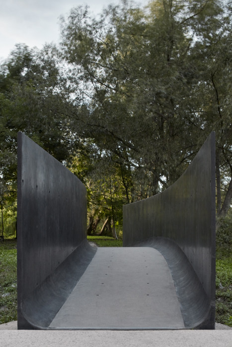 Lávka je koncipována ve vyšším smyslu jako magický portál mezi světem živým a mrtvých, či jako numinózní objekt z Vesmírné odysey. Je provedena z vysokopevnostního mrazuvzdorného UHPC betonu třídy C110/130 s rozptýlenou výztuží. Unikátní architektonický návrh zkoumá hranice lehkosti a subtilnosti pěší lávky, výtvarně je založen na uhrančivosti černého, technologicky extrémně vyspělého materiálu. Konstrukční řešení na rozpon 10 metrů se vzepětím 0,4 metru vhodně využívá dvojí zakřivení geometrie lávky, stabilizuje konstrukci v obou stěžejních směrech a umožňuje jednoduché zavětrování zábradlí lávky. Příčný profil lávky má šířku 1,5 metru. Objem spotřebovaného materiálu je 1,4 metrů krychlových, váha lávky je cca 3,5 tuny. Během ověřování vlastností konstrukce a technologie odlévání byl vytvořen prototyp, který byl podroben zátěžovým zkouškám.