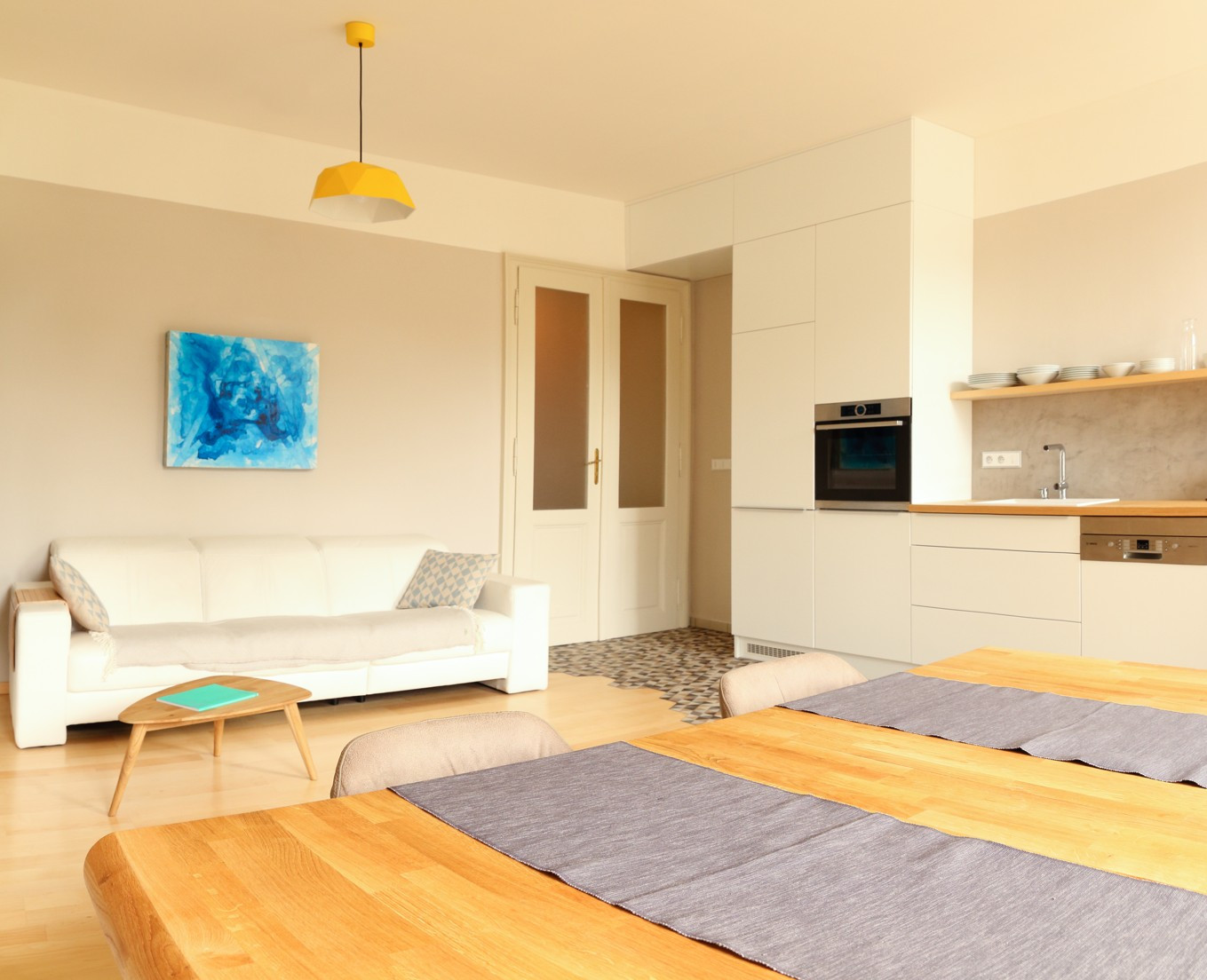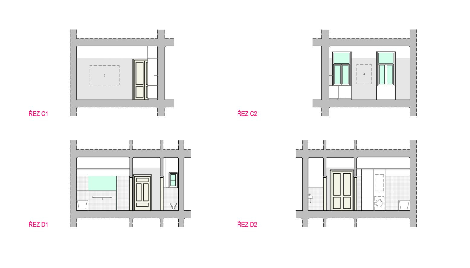Kromě dispozičních změn bylo pak samozřejmým cílem úprav pozvednutí celkové technické a estetické úrovně bytu na soudobou úroveň standardu bydlení.