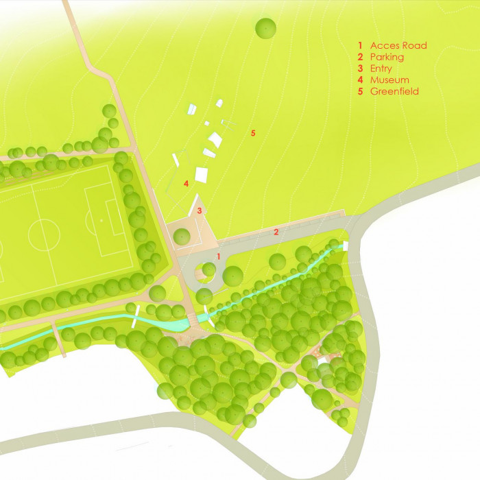 Projekt řeší urbanisticko-architektonickou strukturu archeoparku včetně technické, dopravní infrastruktury a vegetačních úprav. Z hlediska širších urbanistických vztahů má archeopark významnou polohu. Nachází se na rozhraní extravilánu obce a volné krajiny a je zároveň součástí působivé scenérie Pálavských vrchů. Celý objekt je umístěn pod terén, ze země vstupují pouze části bílých betonových věží.