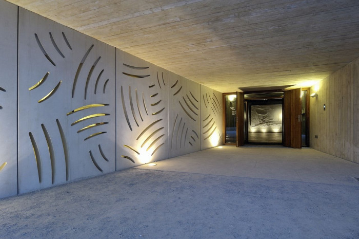 Z těchto hledisek vzešel koncept podzemní stavby a volné parafráze „vápencových skal vybíhajících ze zeleně luk a vinohradů“.