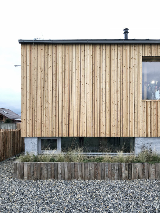 Novostavba rodinného domu sa nachádza na okraji malebnej dediny Mošovce pod úpätím pohoria Veľká Fatra. Pozemok s mierne svažitým klesaním na juh je situovaný na bývalých “záhumniach”, ktoré sú pre turčiansku dedinskú architektúru typické drevenými stodolami s čiastočne murovanými stenami a veľkou stanovou strechou. Tradičný vizuálny vzhľad objektov vidieka bol východiskovým bodom pri tvorení hmotovej skladby, materiálového riešenia fasády a pri formovaní strešnej krajiny.