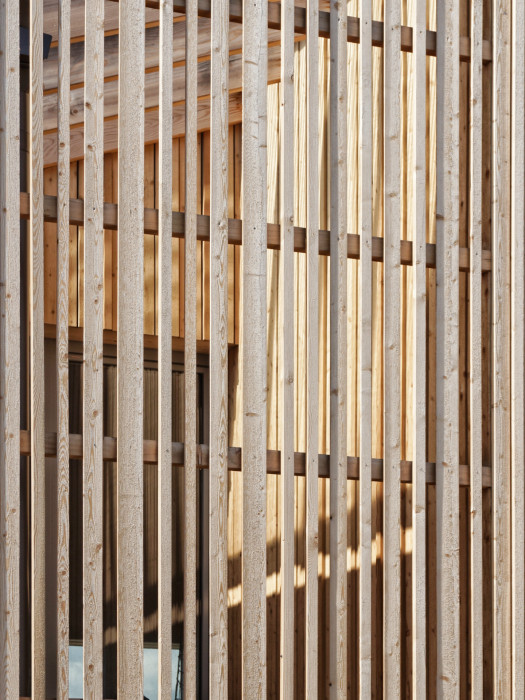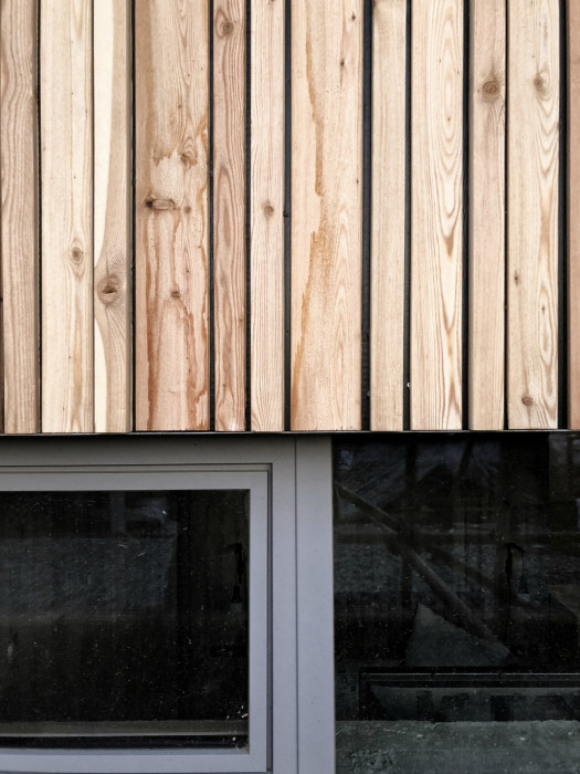 Z konštrukčného hľadiska sa jedná o stavbu s kombinovanými konštrukčnými systémami. Spodná stavba (1. a 2. úroveň) je železobetónová s priznaným betónom v interiéri s otlačenou kresbou dreva z debnenia vyrábaného na mieru. Horná stavba je drevostavba so stĺpikovou konštrukciou so záklopom z veľkoformátovej biodosky. Aj v dennej časti je smrekový obklad výrazným interiérovým prvkom, ktorý dodáva priestoru jedinečnosť a útulnosť. Výraz stavby z exteriéru odzrkadľuje konštrukčný systém - spodná stavba je zateplená striekanou tepelnou izoláciou ošetrenou sivým epoxidovým náterom s UV ochranou. Jej prevedenie a nerovnosti opäť poukazujú na fasády starých sýpok a humien. Na hornej stavbe je prevetrávaná fasáda s dreveným obkladom rôznych profilov zo sibírskeho smrekovca kladená vertikálne a vytvárajúca reliéf. Okenné otvory a vstupné dvere sú v prevedení drevohliník. Na streche je použitá plechová krytina.