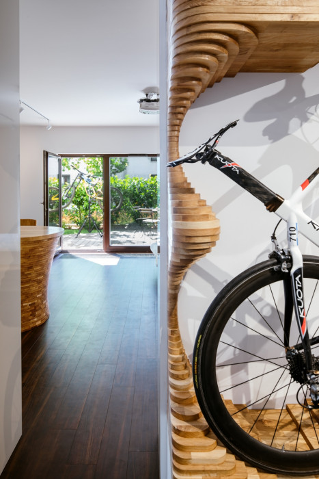 Minimalistický byt na okraji Prahy o rozměru 52 metrů čtverečních s předzahrádkou o výměře 25 metrů čtverečních reaguje na uživatelův aktivní život trávený v divoké přírodě a jeho zájem o současné technologie. Unikátní design spojuje obojí. Ústředním motivem jsou parametricky navržené truhlářské prvky individualizovány a ergonomicky tvarovány do uživatelsky nejvhodnější podoby. Algoritmy byly společně s uživatelem vyvíjeny, aby se docílilo co nejoptimálnějšího designu pomocí digitální fabrikace. Detailní plánování každého dílu a pracovního postupu snížilo celkovou pořizovací cenu, jelikož bylo možné jednoduše si sestavit veškeré truhlářské prvky svépomocí.