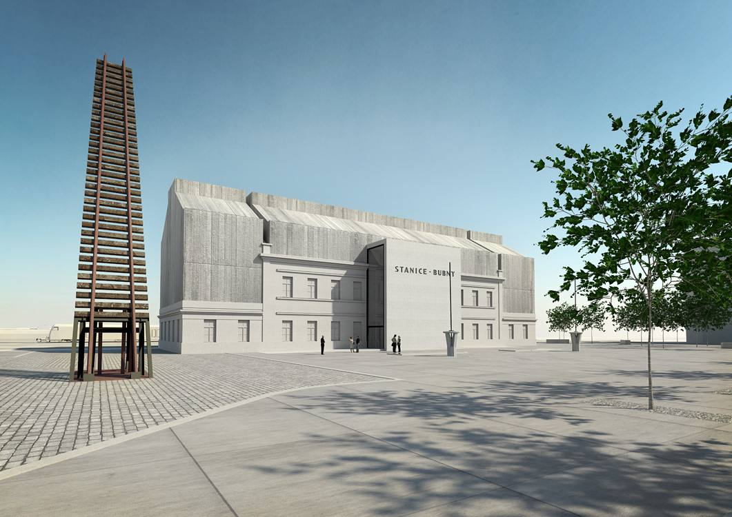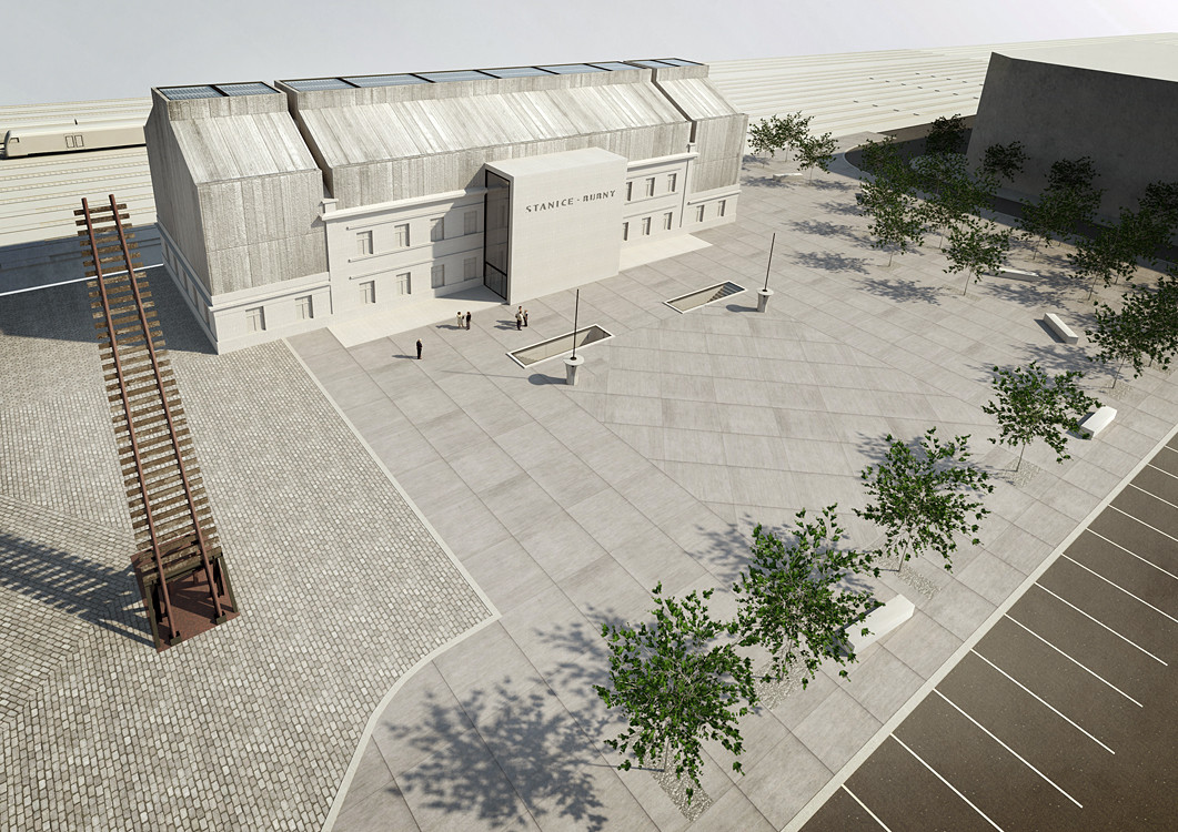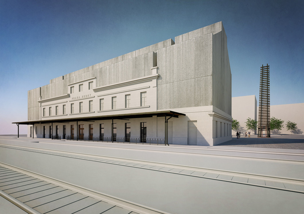Objekt budoucího Památníku ticha stojí v těsné blízkosti staré silnice, kterou pražští židé ve 40. letech minulého století nuceně odcházeli na svou cestu do nenávratna. Památník se v našem návrhu odkazuje na okamžik netečného ticha, které se v Praze v době odsunu židů rozhostilo. Toto ticho strachu, netečnosti a lhostejnosti se zde zpřítomňuje v „kamenné“ znehybnění. Stavba tu stojí a mlčí. Prostředky komunikace domu, kterými jsou otvory jako okna a dveře jsou zaslepené. Komunikace neprobíhá dovnitř ani ven. Přede dveřmi hlavního vstupu, které mohou být symbolickým způsobem vnímány jako ústa domu, je vztyčená stéla, která je překrývá, jako ruka položená před ústa, aby nepromluvila. Ale střechou stávajícího domu prorůstá nová naděje. Na obvodových zdech nádraží, které byly svědkem minulých událostí, vytváříme novou nástavbu. Nastavěné patro přestává být mlčícím, ale otevírá se směrem vzhůru. Symbolické prolomení netečného ticha je hlavním tématem hmoty nástavby.
