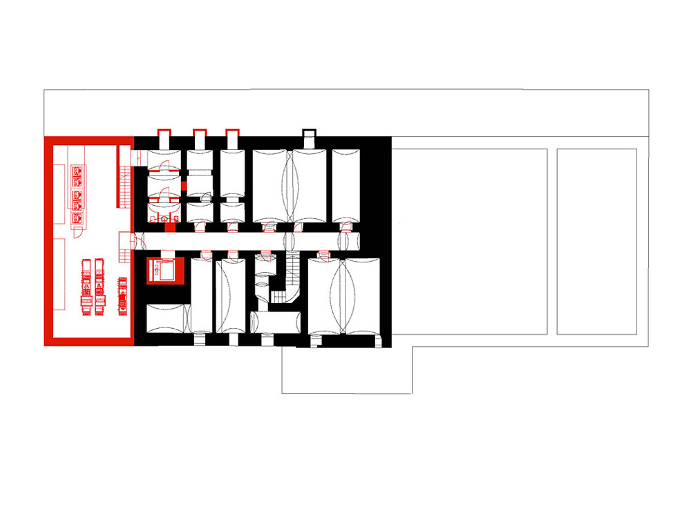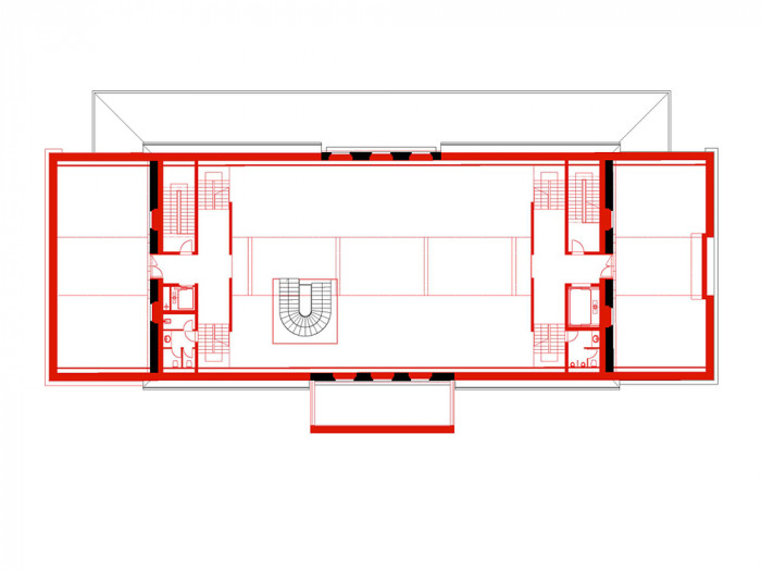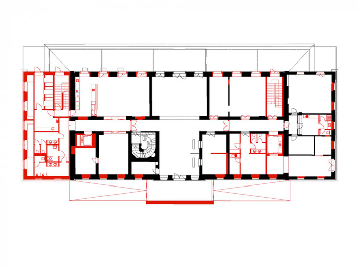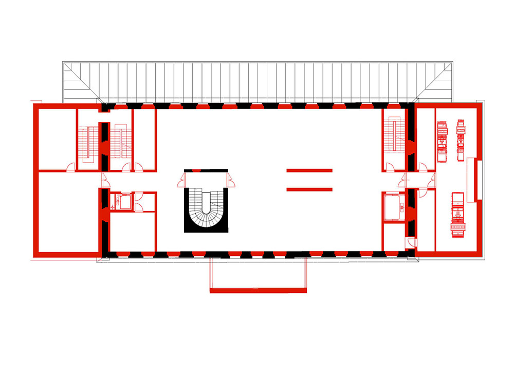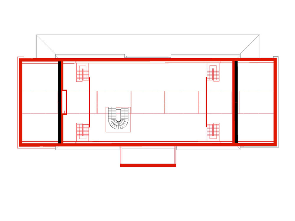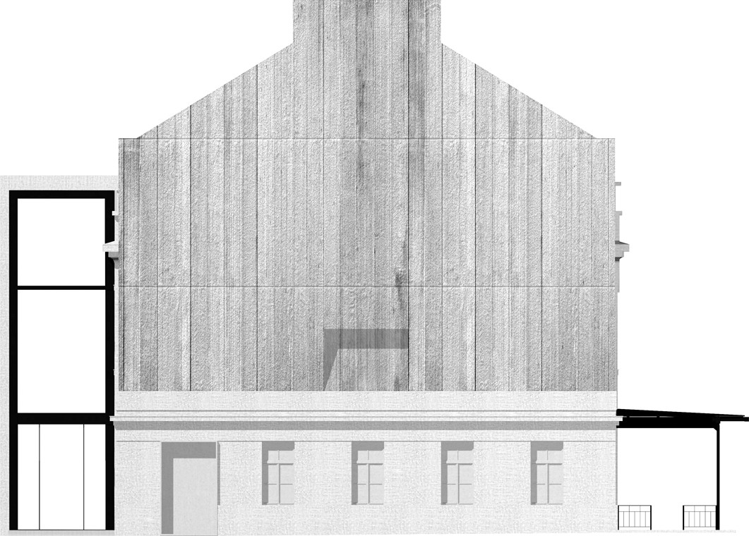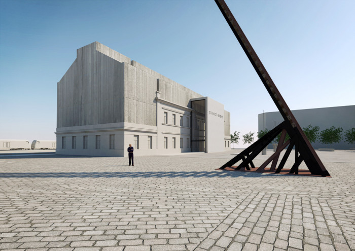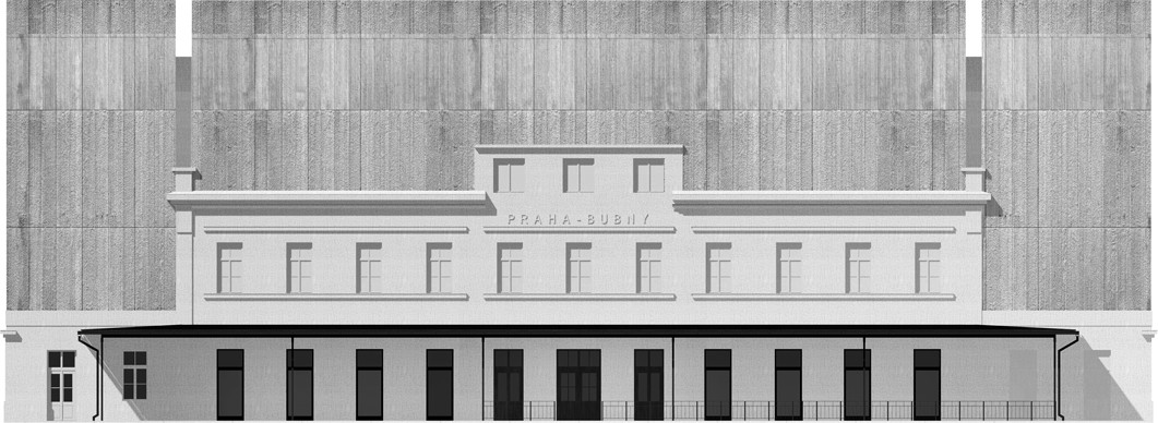Fasády původního nádraží, které jsou jedním z hlavních exponátů, upravujeme monochromatickou betonovou vrstvou, která pokrývá a kopíruje členění fasády, římsy i nápisy. Okna jsou zaslepená, zhotovená jako exaktní výlisky z jemného vysokopevnostního betonu v modelaci původních oken. Výraznější vertikální strukturou opatřujeme betonovou fasádu nástavby.