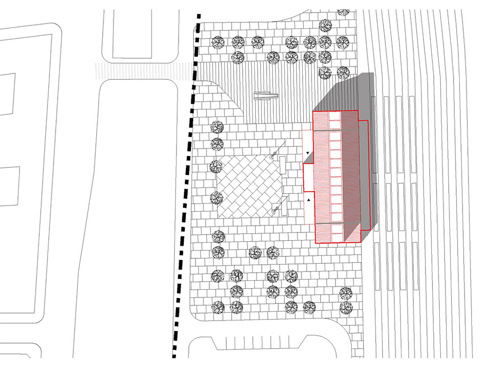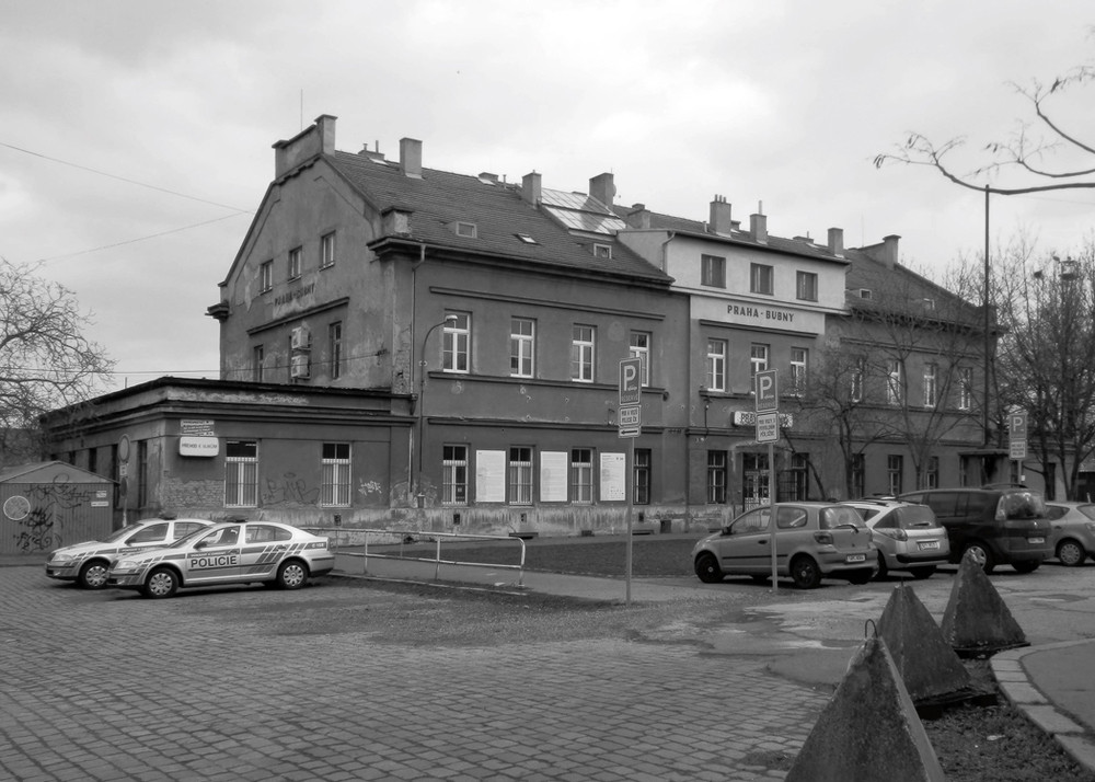 Fragment cesty končící kolejemi je vzpomínkou na odsun židovského obyvatelstva z Prahy. Po dodnes zachované části původní dlažby v těsné blízkosti nádražní budovy kráčeli deportovaní. Je to relikt této události na mozaice městského povrchu. Tento relikt v našem návrhu restaurujeme jako dochovanou část fresky. V některých místech jej doplňujeme přesunutím a přeskládáním. Socha Aleše Veselého „Brána nenávratna“, připomínající neblahé události odchodu, je záměrně na této dlažbě osazena a je důstojným otevřením prostoru Památníku ticha. Budoucím pročištěním okolí od parkovišť, plotů a náletové zeleně tato socha vynikne a na čisté ploše získá až metafyzické působení. Uvolnění prostoru před domem umožní vnímat celou situaci ve vzájemných vztazích cesty, domu a sochy.