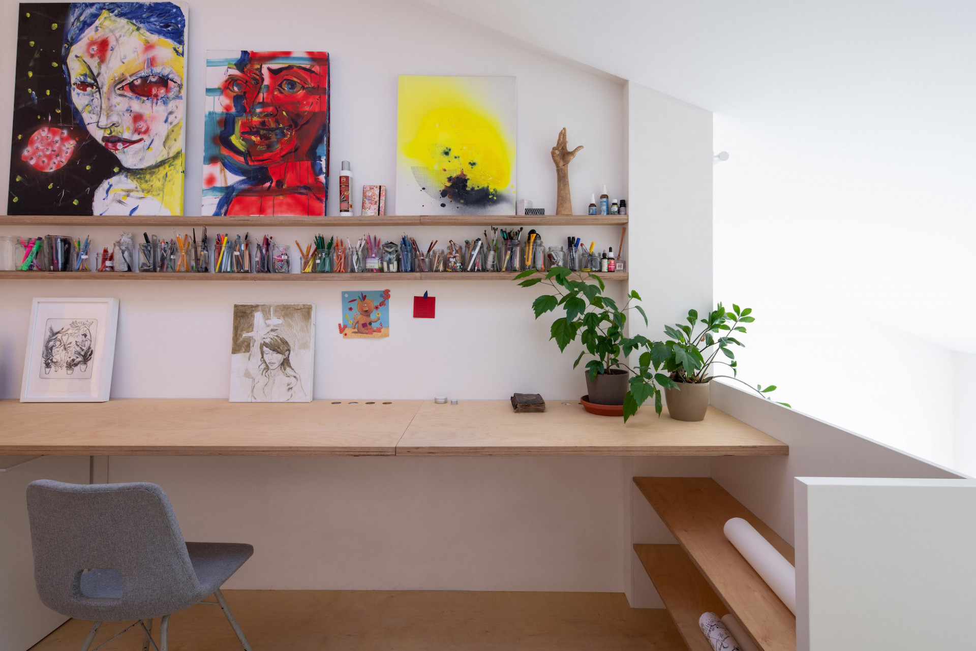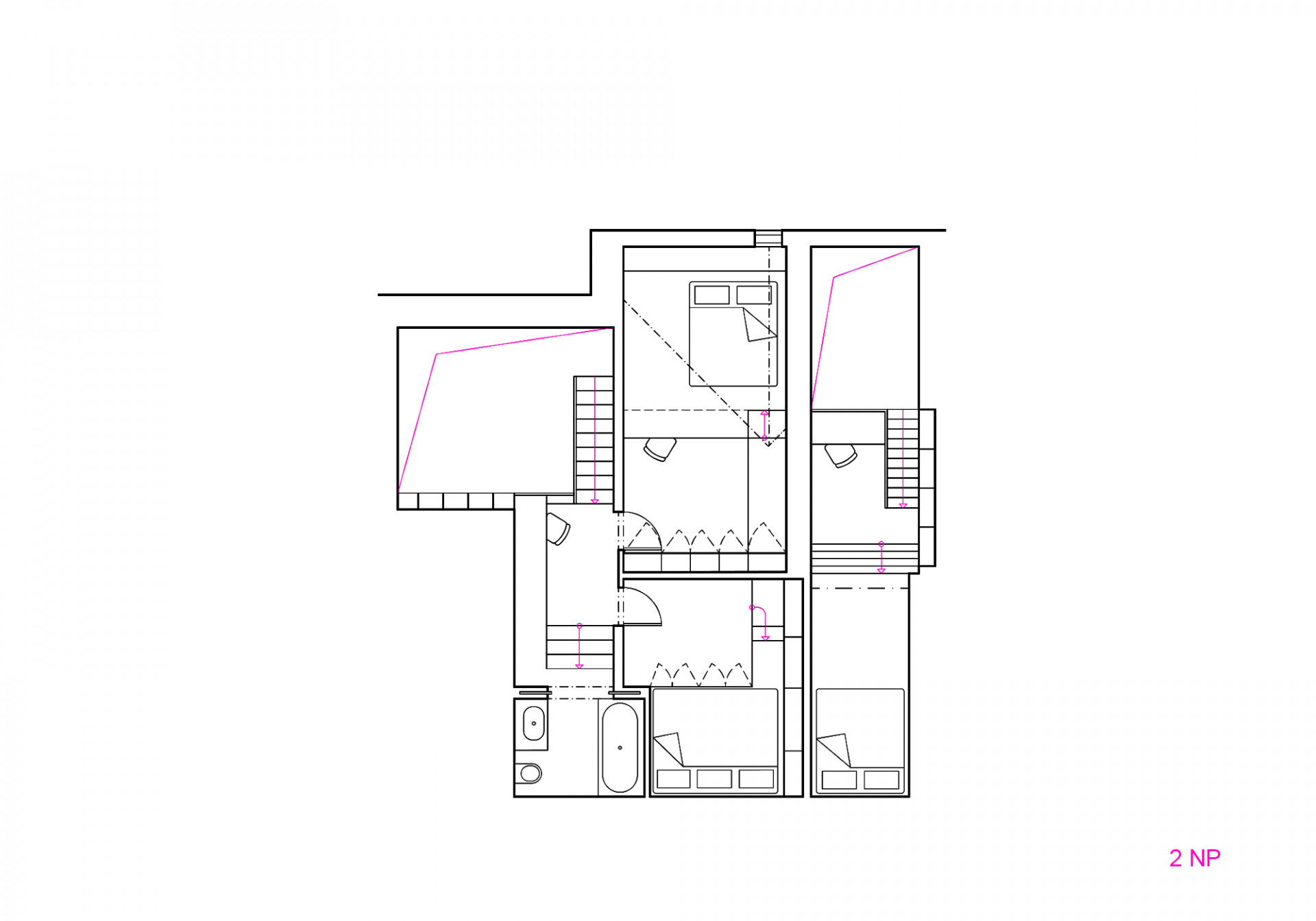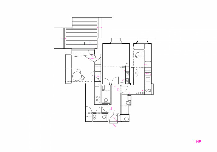 Náročný úkol, který vznikal s přestávkami několik let. Celá zakázka byla specifická tím, že je klient kamarád (a architekt). Tedy, toho času svobodný mladý muž, si pořídil velkorysý víceúrovňový prostor a rozhodl se jej rozčlenit do více jednotek, ať už za účelem pronájmu nebo ubytování návštěvy. Nejdříve to vypadalo, že ani nemá v plánu zde bydlet.