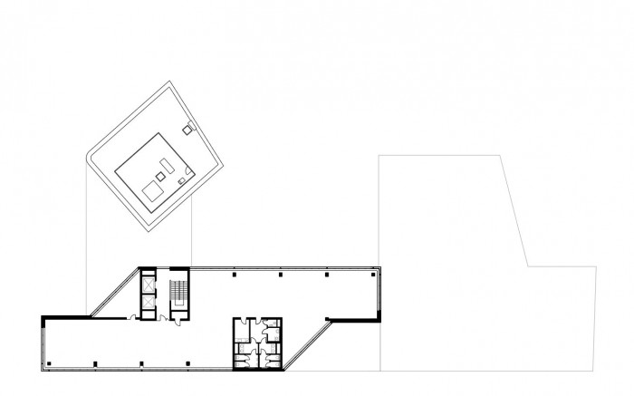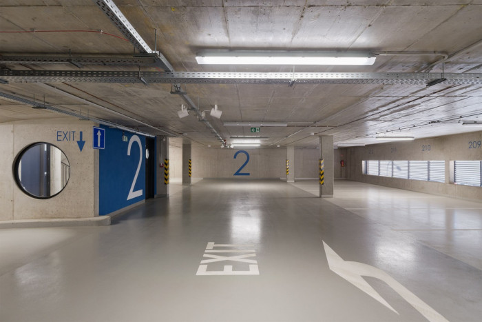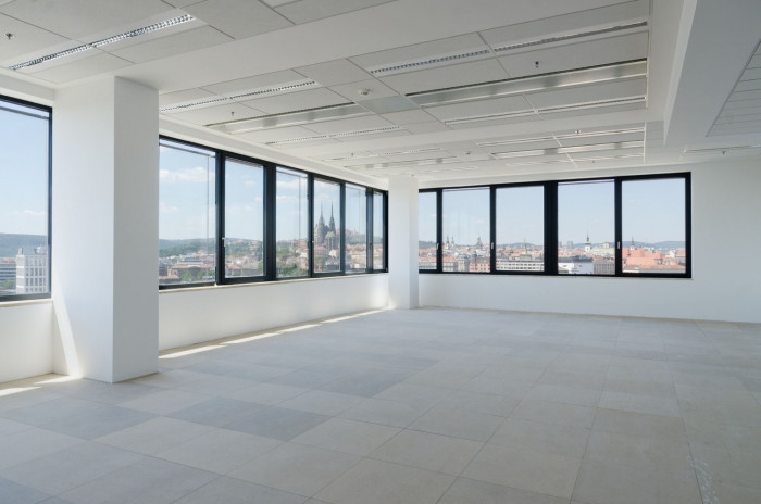 V dvanáctipodlažní části je počítáno se dvěma výtahy, v pětipodlažní s jedním. Na jádra ve společné třípodlažní podnoži a pětipodlažní části navazují vnitřní chodby, kolem kterých jsou umístěny kancelářské prostory, hygienické zázemí a technické místnosti. Devět nejvyšších podlaží nárožní věže je navrženo jako open-space kanceláře, s možností dělení příčkami dle přání nájemníka.V podzemním podlaží je umístěno 23 parkovacích míst. Parkovací objekt je navržený systémem D'Humyho ramp. Na čtyřech párech nadzemních půlpodlaží a jedné dvojici podzemních půlpodlaží je k dispozici celkem 130 parkovacích míst.