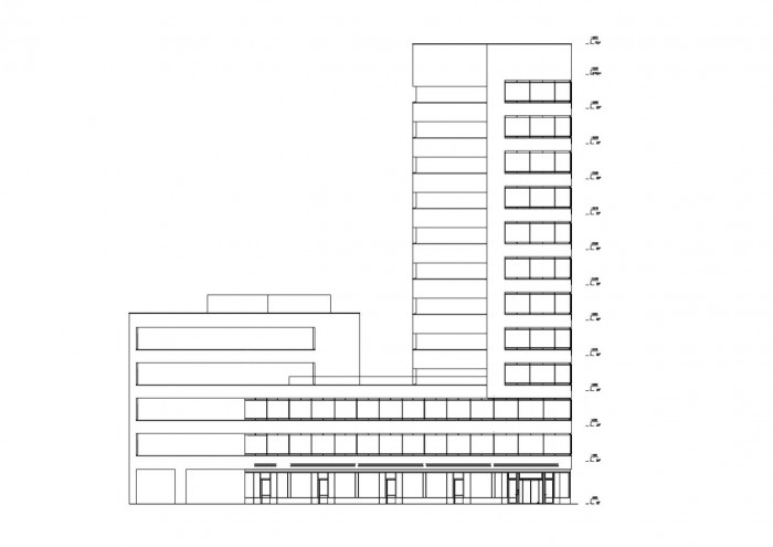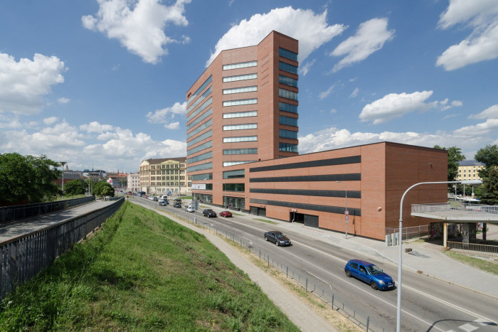 Základní architektonickou kompoziční myšlenkou bylo vytvořit dynamický štíhlý objekt, v kolmé poloze na brněnský „ring“, s fasádou a detailním zpracováním komunikující s kontextem stávající industriální architektury 19. století - Vaňkovy slévárny. Administrativní část je vystavěna na půdoryse dvou k sobě přiléhajících, středově souměrných, pravoúhlých lichoběžníků. Podélně je orientována k centru města a konzolovitým vyložením nad nárožím s hlavním vstupem vytváří dynamický prvek celé kompozice, umocněný nízkými pásy oken v kosoúhlých částech.