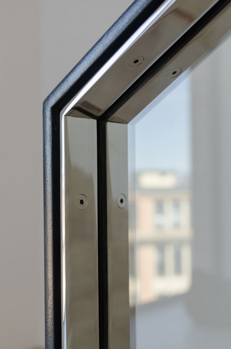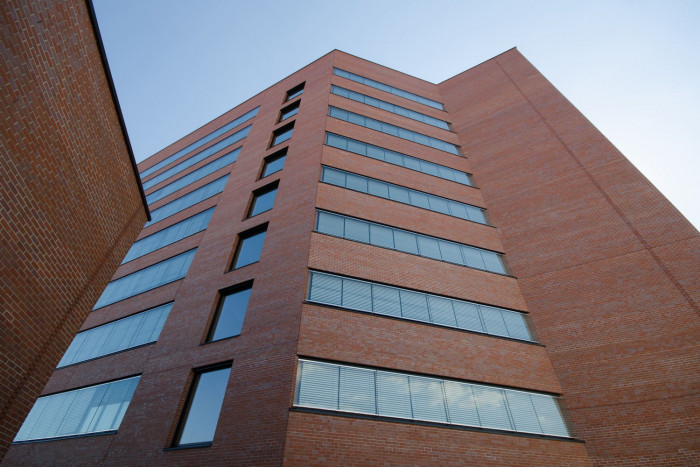 Fasáda celého objektu je z lícových cihel s jemnými valéry v intenzitě vypálení. U parteru byl kladen důraz na kvalitní řemeslné zpracování detailů nerezových leštěných zasklívacích rámů a ocelových výkladců. Kompozici výkladců doplňují pásová okna vyšších podlaží a podélné větrací otvory parkovacího domu. Okna administrativní části jsou řešena jako dvojitá s třetím zasklením, za nímž jsou umístěny stínící žaluzie. V interiéru objektu je použit světlý travertinový obklad, který se uplatňuje především na schodištích a ve vstupních halách. Před objektem na nároží je navržen široký pás chodníku s kruhovou zatravněnou plochou. Součástí prostranství je i nová litinová kašna, upomínající na jména významných průmyslníků 19. století - zakladatelů průmyslové slávy města Brna.