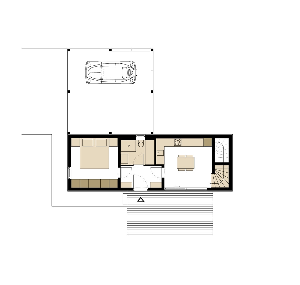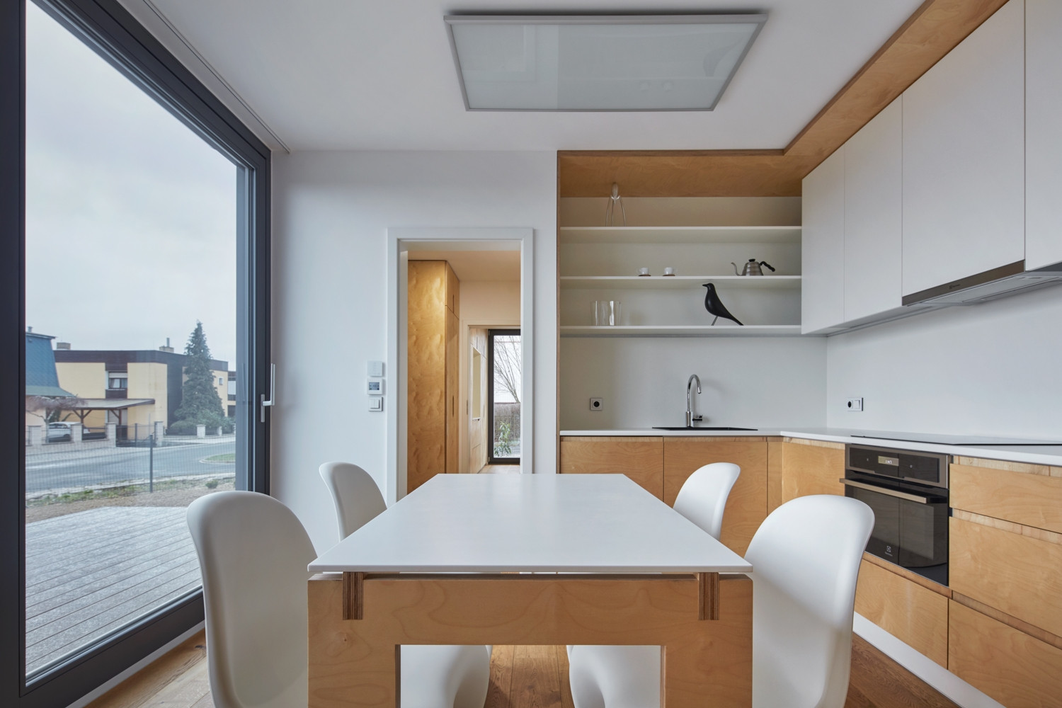 Jednašedesátka je vyrobena z 95 % ze dřeva. Její nosná konstrukce je z lepeného dřeva a má přesné spoje podle švýcarského patentu. Přesné frézované spoje ve tvaru lichoběžníku jsou udělány velmi jednoduše a jejich pevnost je obrovská. Zateplení tvoří dřevovláknitá izolace, která má přínosný fázový posun den – noc. Fasáda je difuzně otevřená, ze severského modřínu. Vytápění domu je sálavými panely, větrání lokální rekuperací, okna jsou dřevěná s trojsklem. Dům je uložen na pětici zemních pasů. Interiér je bílý a dřevěný a odráží tak hlavní konstrukční materiál domu. Nábytek je vyroben z březové překližky se skrytými úchyty, podlaha a schodiště jsou z masivního dubu.