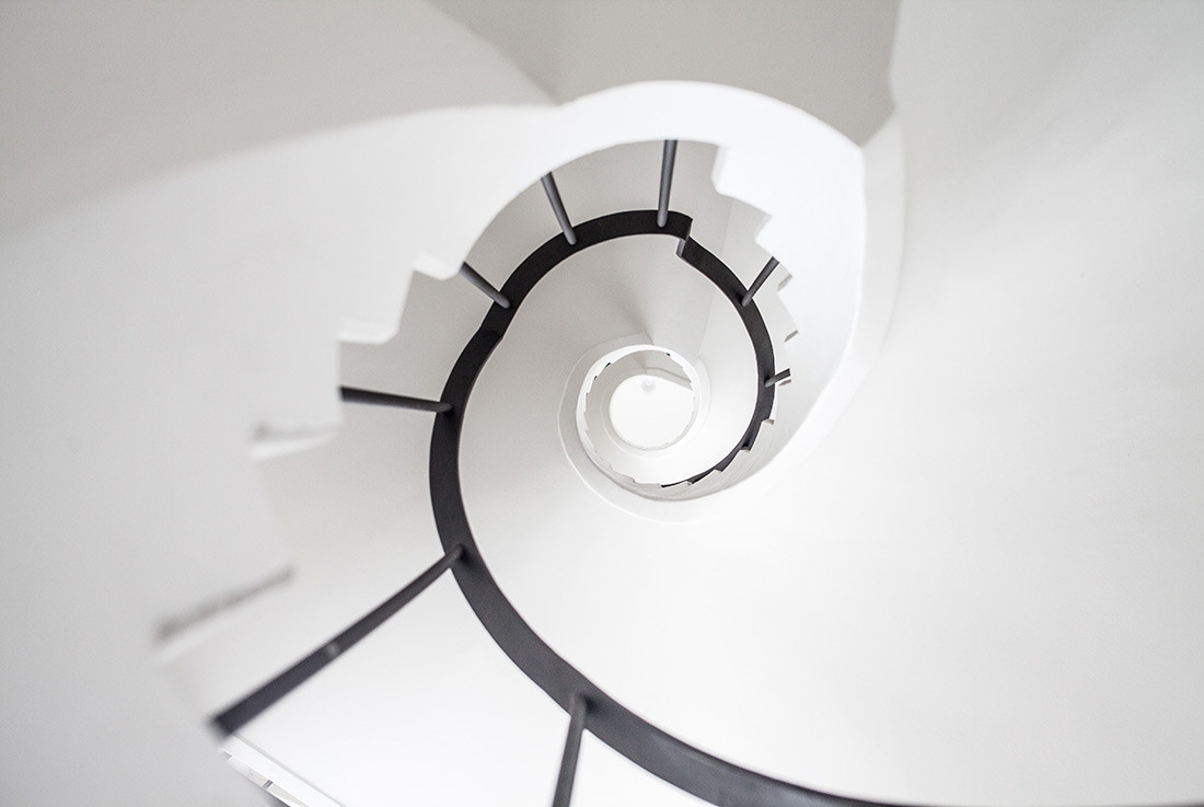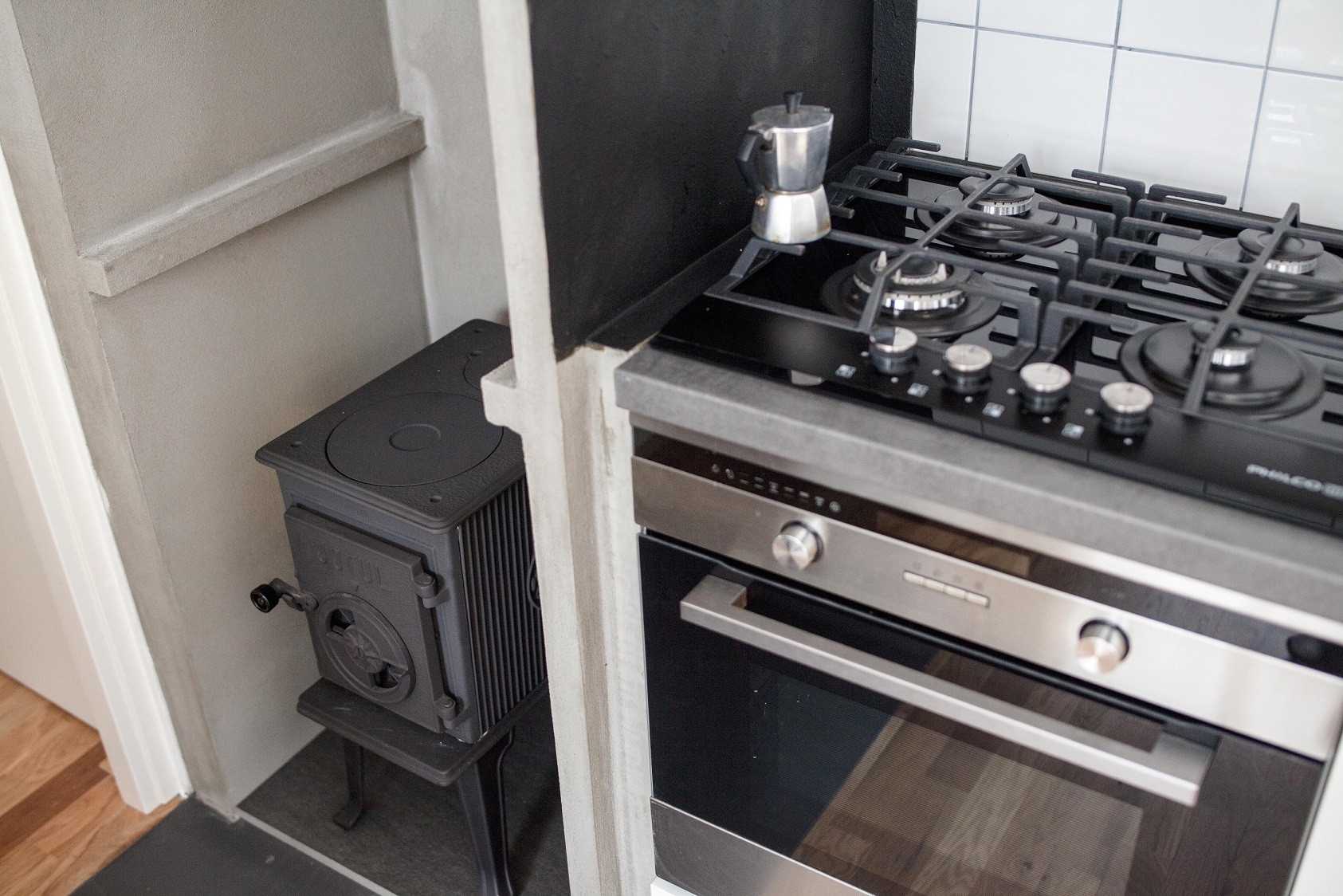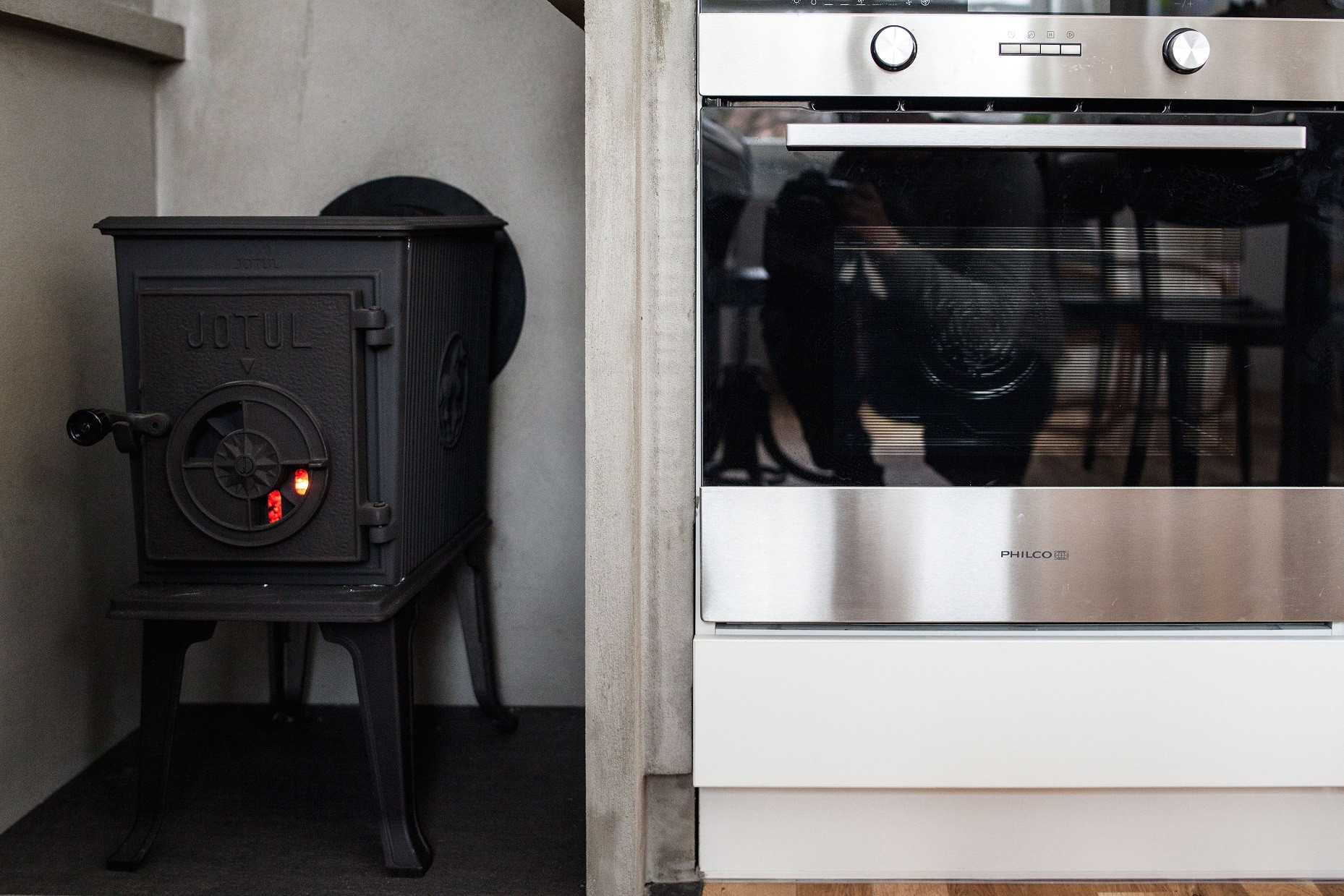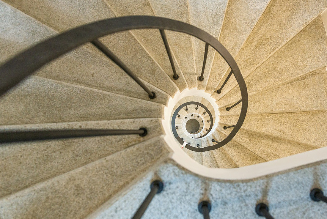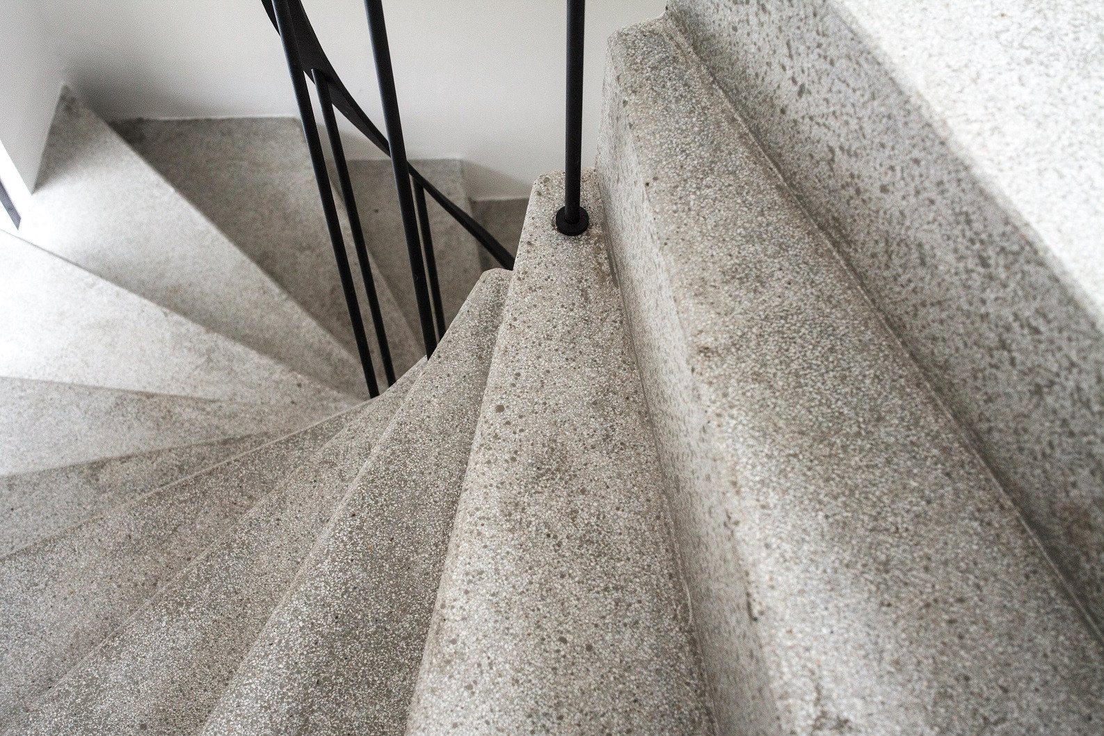 Úzký a protáhlý půdorys bytu v Železné ulici je řešený podobně jako kupé vůz vlaku. Jeho uspořádání je ovlivněno komplikovanou urbanistickou situací uvnitř městského vnitrobloku, část bytu totiž stojí na cizím pozemku. V centru dispozice se nachází obytný prostor s kuchyní, ze kterého je možné vystoupit na terasu ústící do soukromého dvora, v útrobách sousedního domu jsou pak umístěny koupelna a skladovací prostory. Byt je prosvětlen hlavně ze západu, velkorysými okny bývalé tiskárny.