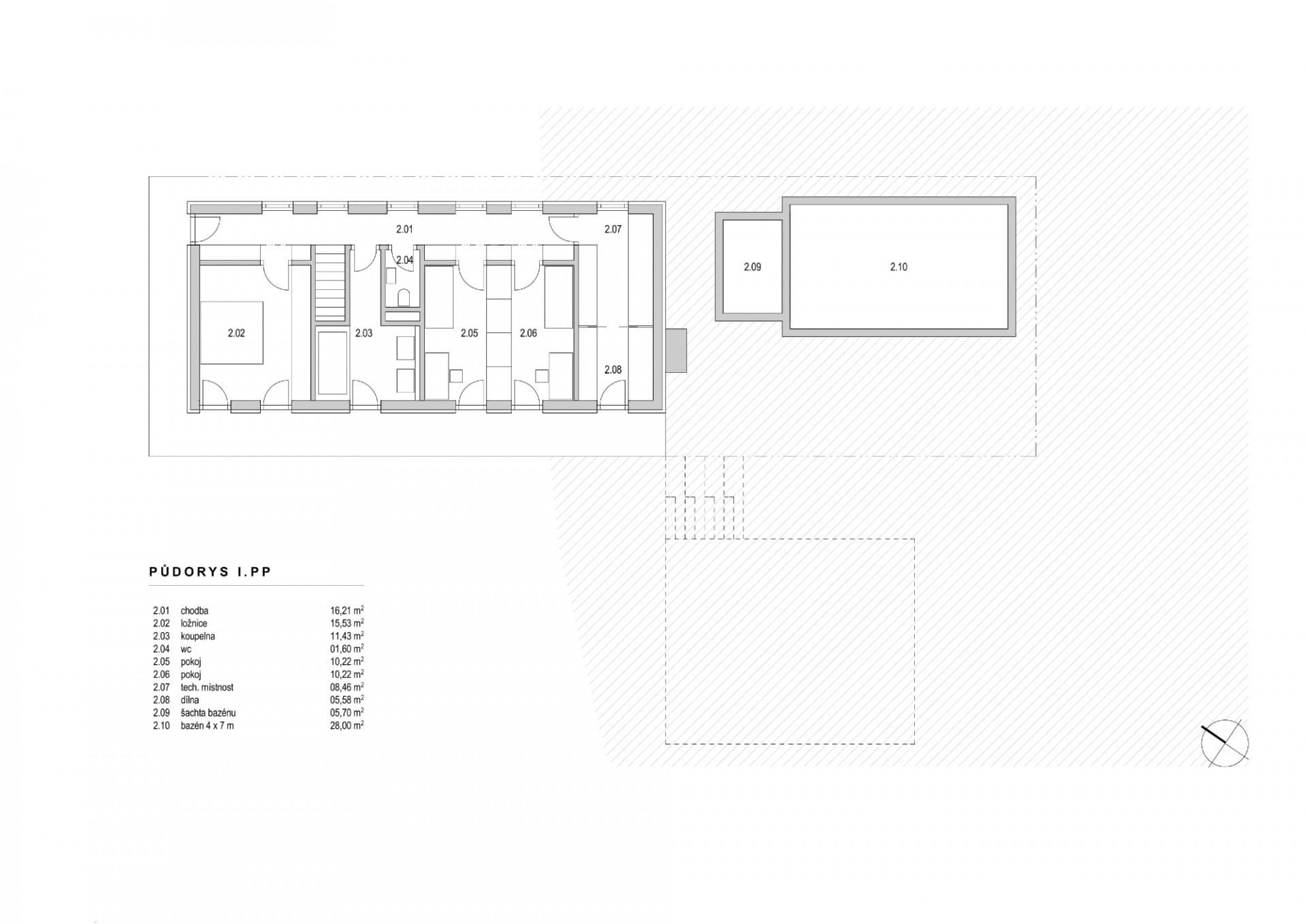 Kajuty pod hladinou ponoru, doslovně i v přeneseném slova smyslu intimity, jsou přes anglický dvorek orientovány do soukromé části zahrady.