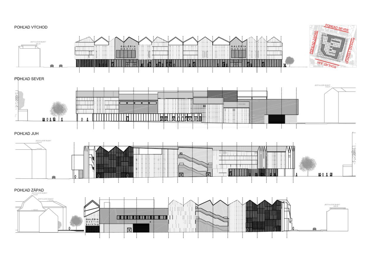 Pri návrhu obchodného centra boli zohľadnené základné a podstatné väzby na okolie, a to predovšetkým hlavný pohyb osôb, hlavné dopravné ťahy a v neposlednom rade hmotové a priestorové riešenie okolia a mestského prostredia. Cieľom návrhu je sprostredkovať prepojenie priestoru v okolí kostola Sv. Martina s hlavným martinským námestím. Poloha východnej hrany objektu úmyselne nadväzuje na uličný front severnejšie položených domov na námestí, dochádza tak k akcentovaniu Župného domu, ako významného solitéru.